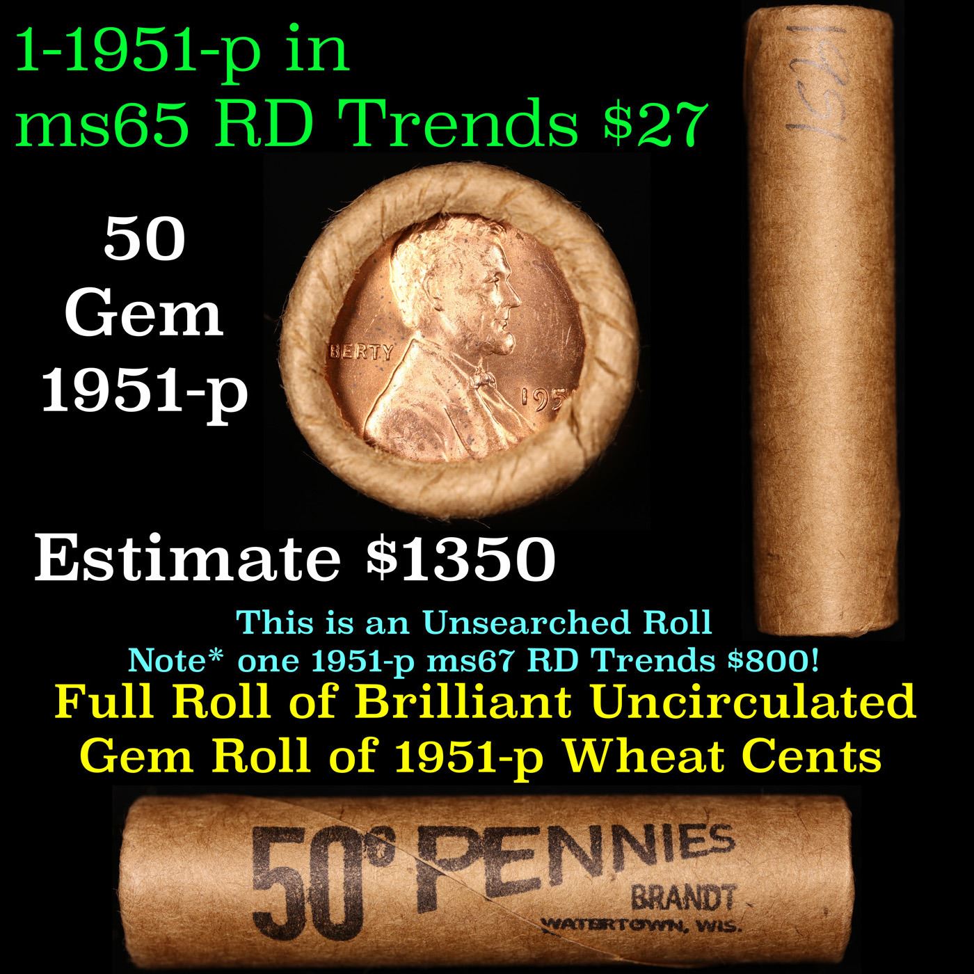 Shotgun Lincoln 1c roll, 1951-p 50 pcs Brandt Wrapper . 0