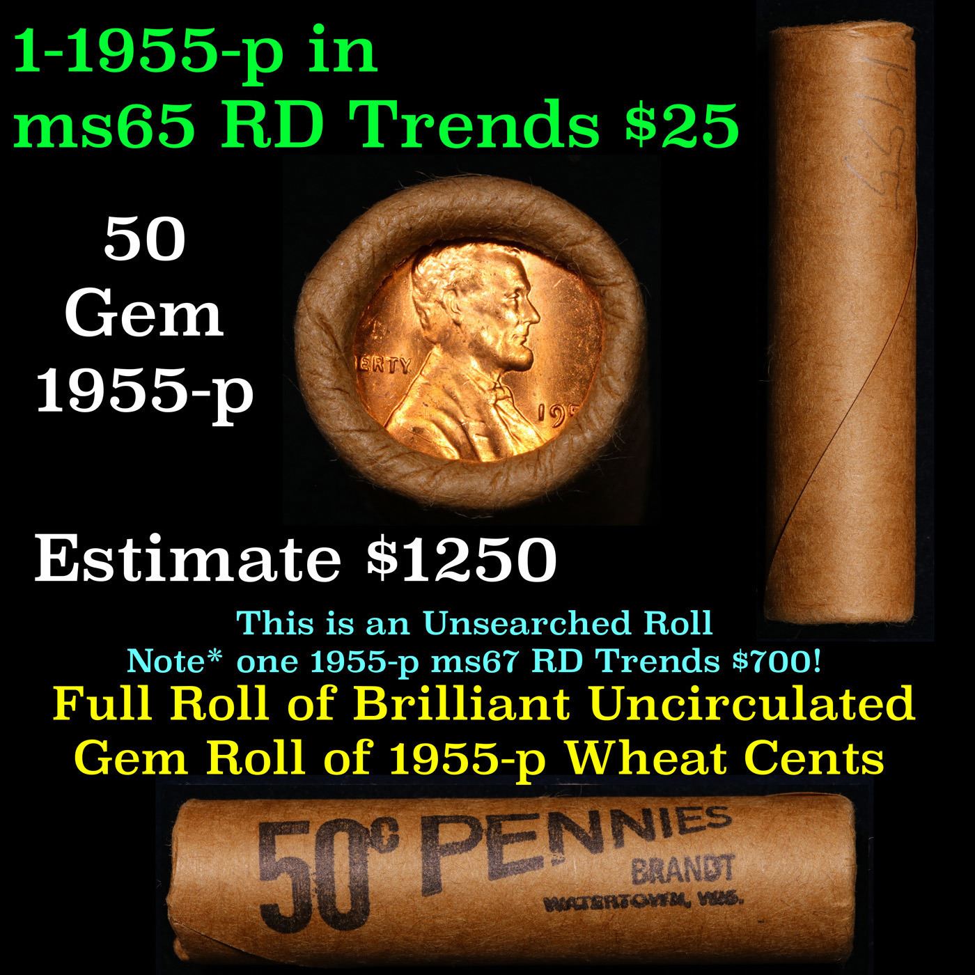 Shotgun Lincoln 1c roll, 1955-p 50 pcs Brandt Wrapper .