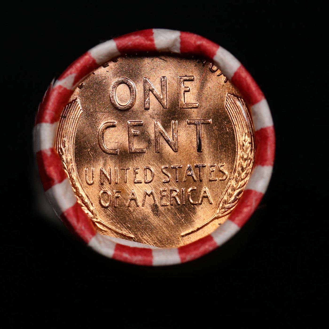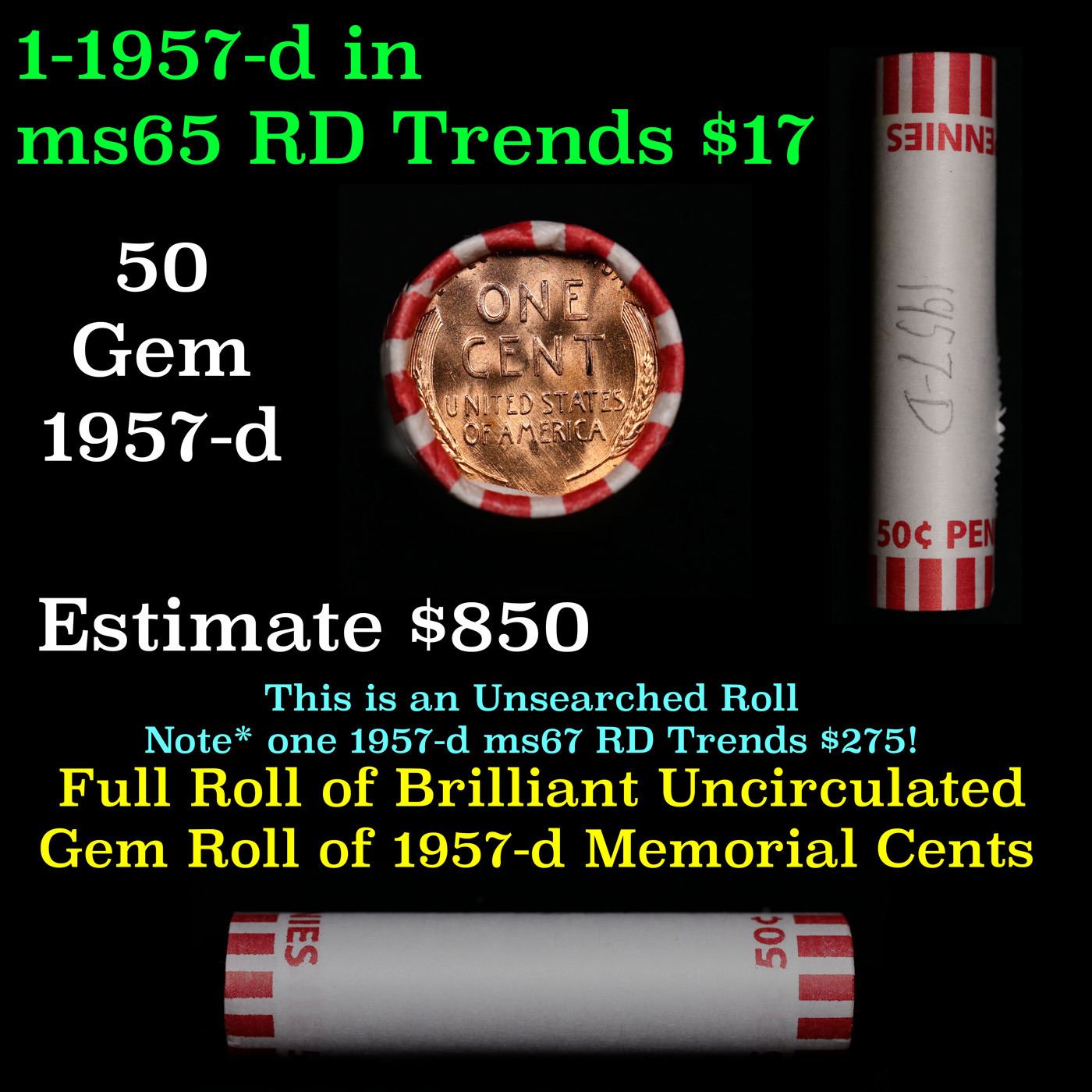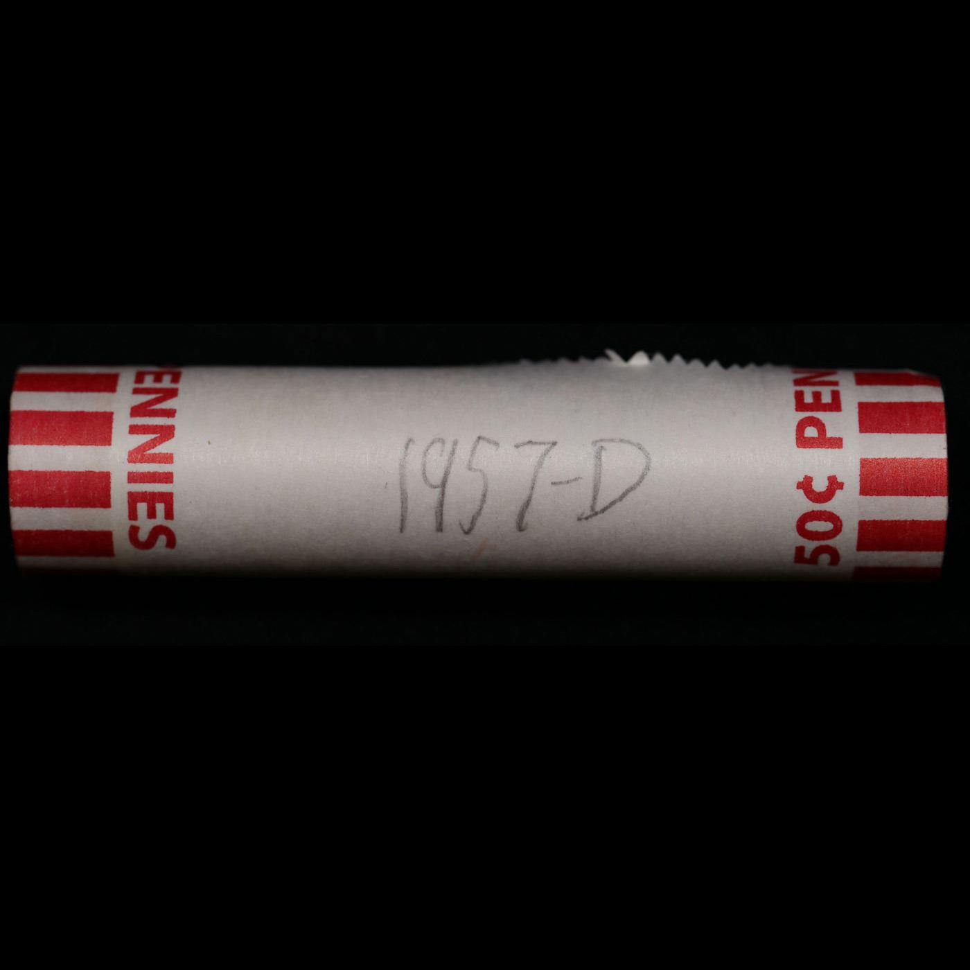 Shotgun Lincoln 1c roll, 1957-d 50 pcs Bank Wrapper.. A terrific Shotgun roll of Lincoln cents. Most if not all coin should be cherry red.