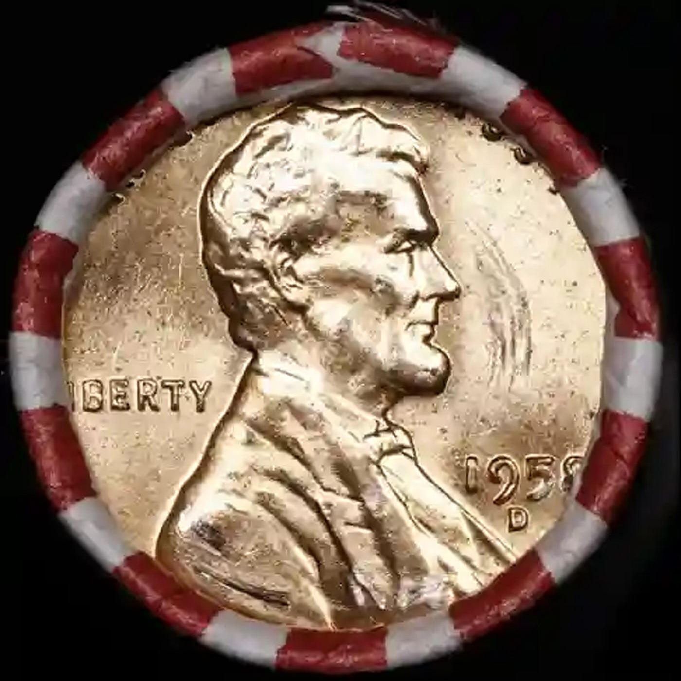 Shotgun Lincoln 1c roll, 1957-d 50 pcs Bank Wrapper.. A terrific Shotgun roll of Lincoln cents. Most if not all coin should be cherry red.