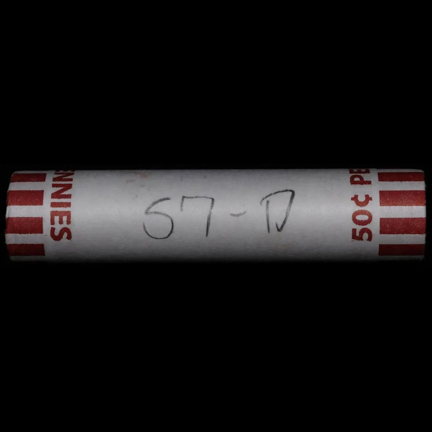 Shotgun Lincoln 1c roll, 1957-d 50 pcs Bank Wrapper.