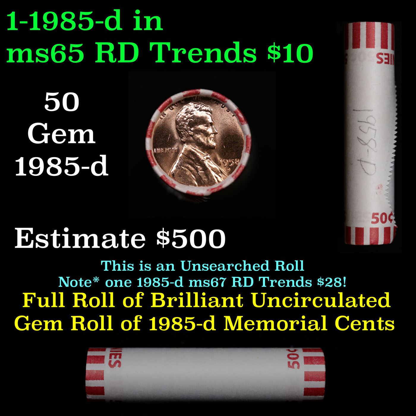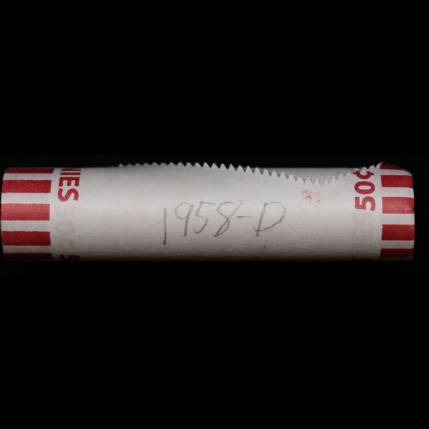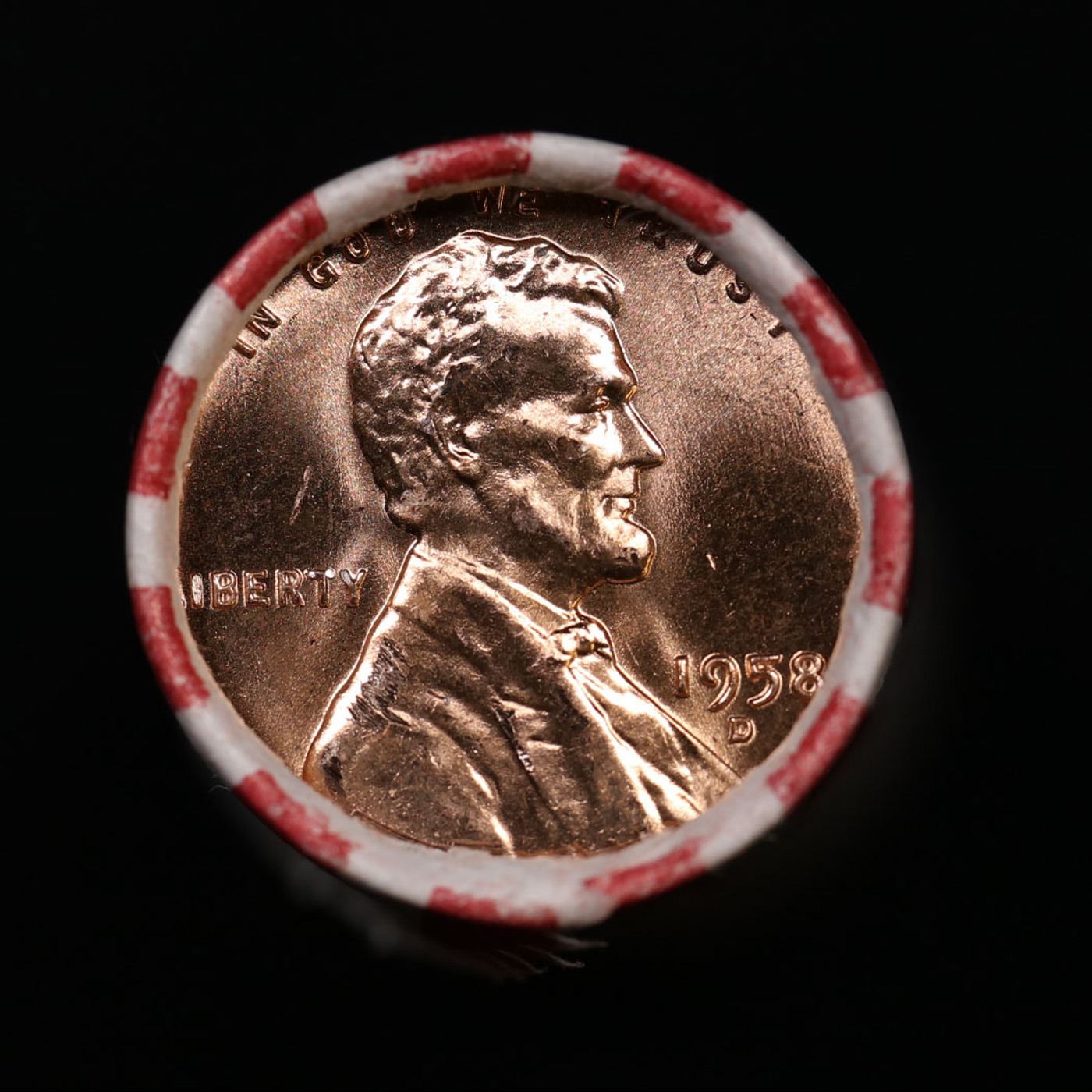 Shotgun Lincoln 1c roll, 1958-d 50 pcs Bank Wrapper.. A terrific Shotgun roll of Lincoln cents. Most if not all coin should be cherry red.
