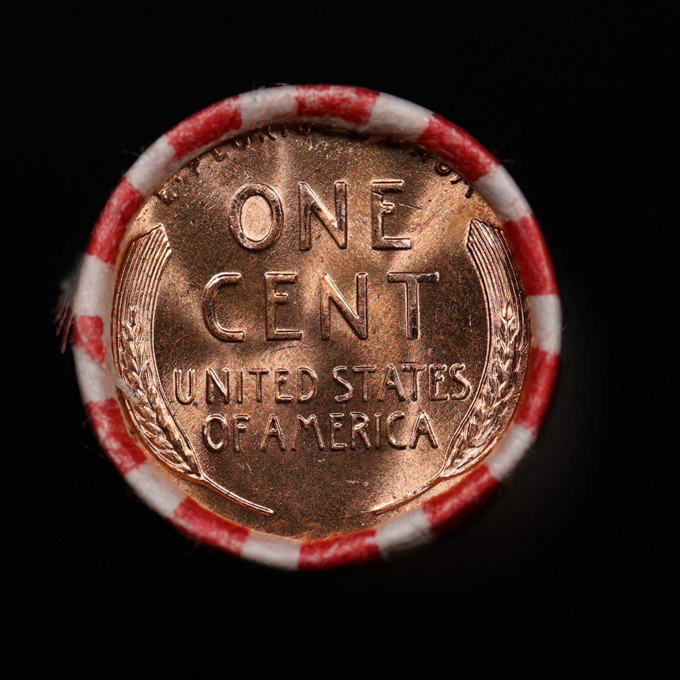 Shotgun Lincoln 1c roll, 1958-d 50 pcs Bank Wrapper.. A terrific Shotgun roll of Lincoln cents. Most if not all coin should be cherry red.