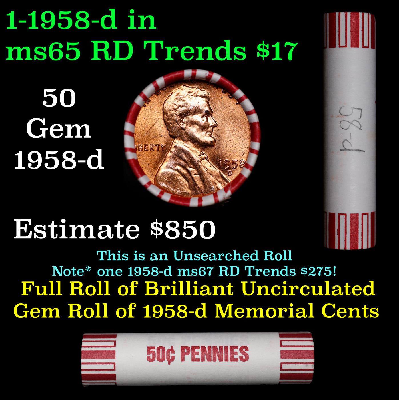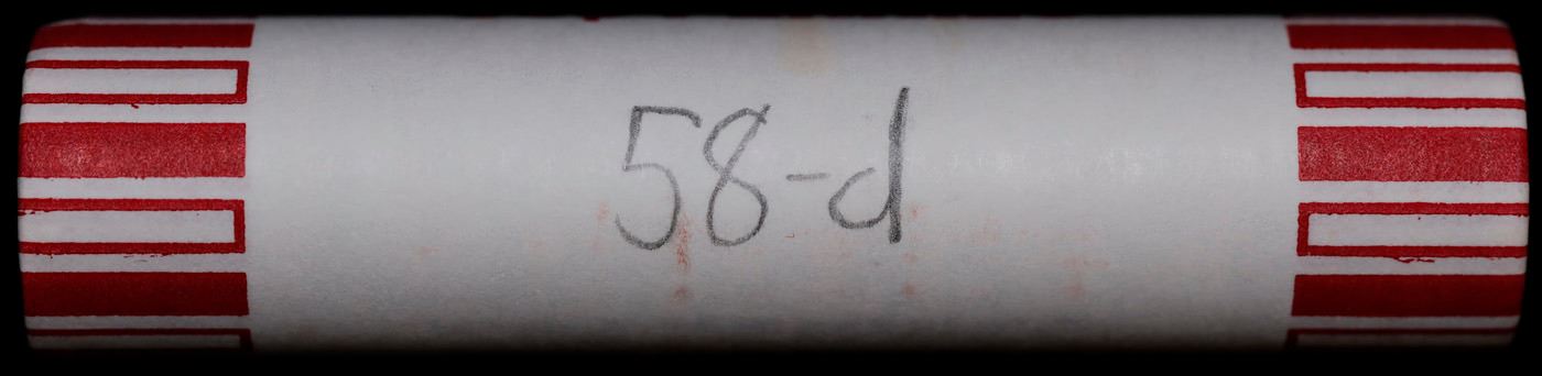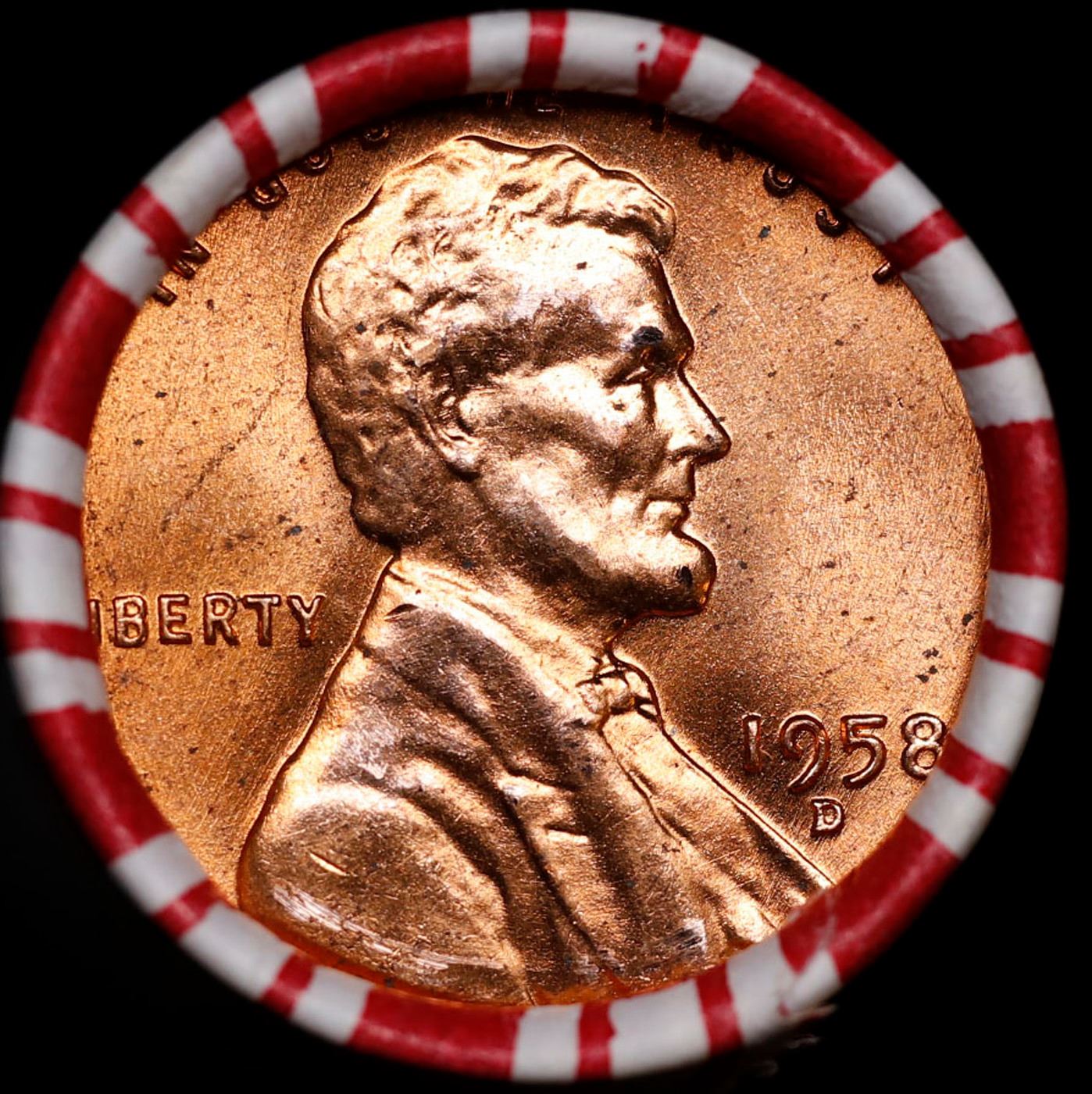 Shotgun Lincoln 1c roll, 1958-d 50 pcs Original Bank Wrapper.. A terrific Shotgun roll of Lincoln cents. Most if not all coin should be cherry red.