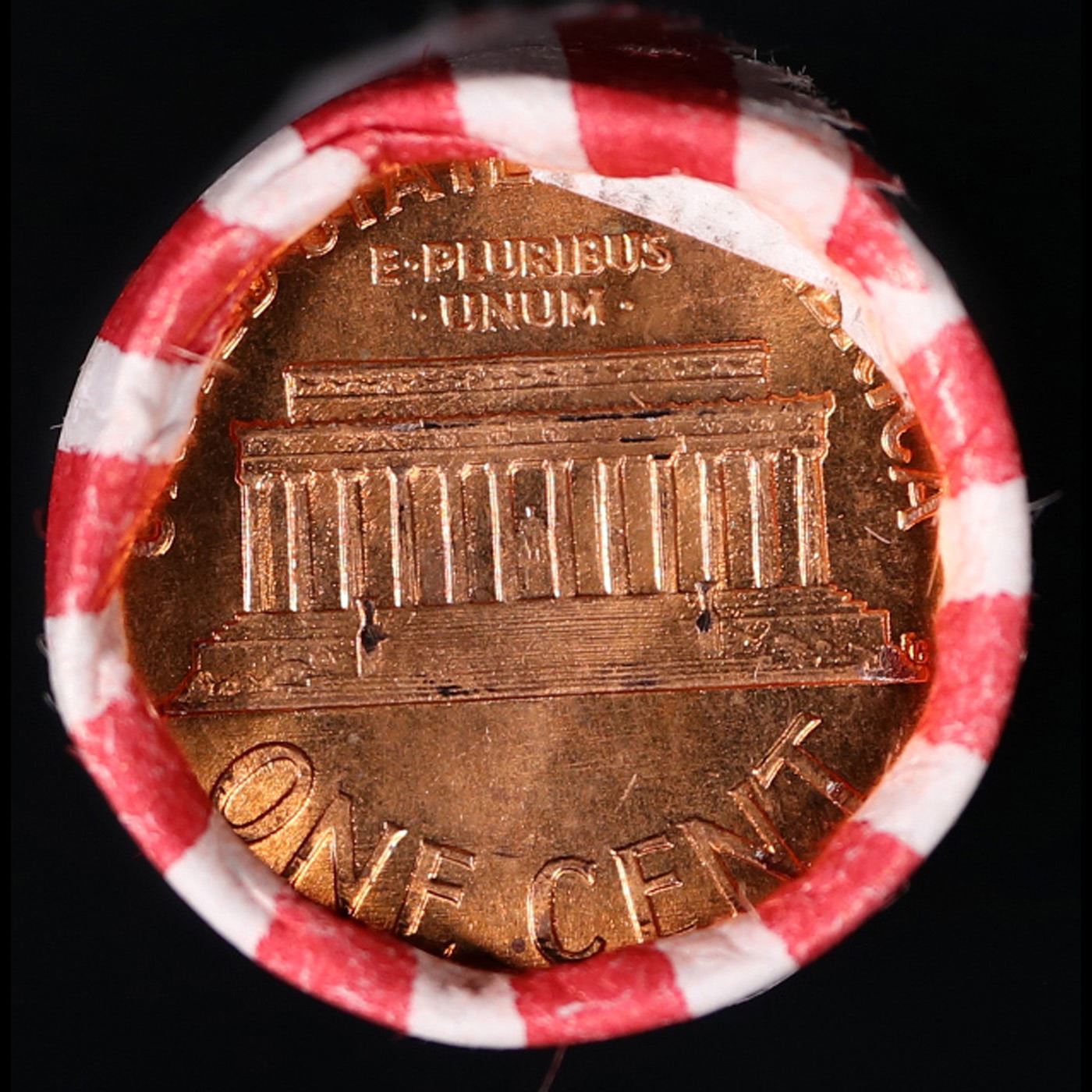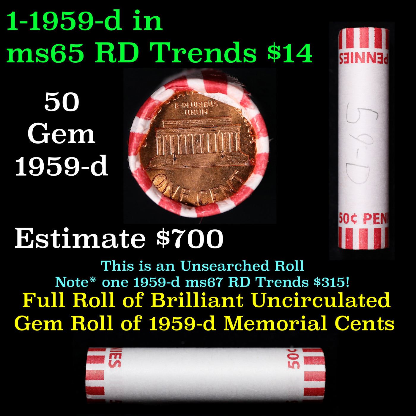 Shotgun Lincoln 1c roll, 1959-d 50 pcs Bank Wrapper.. A terrific Shotgun roll of Lincoln cents. Most if not all coin should be cherry red.