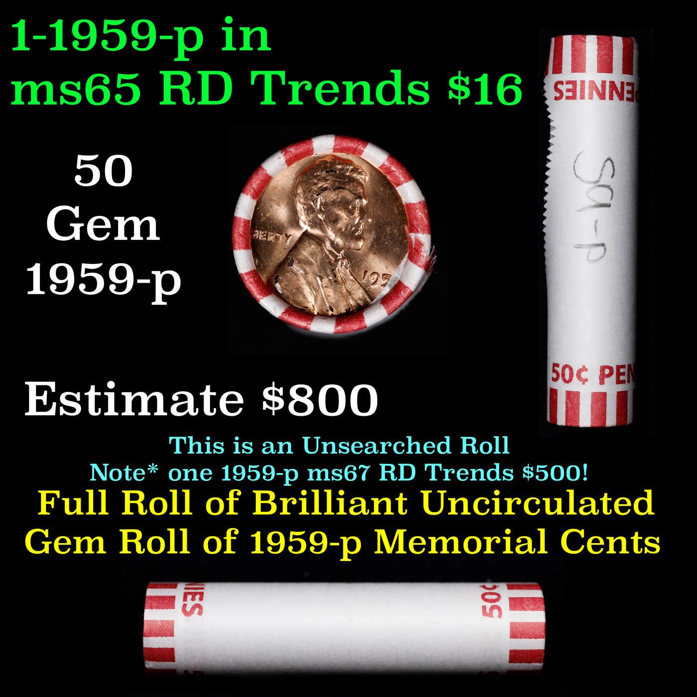 Shotgun Lincoln 1c roll, 1959-p 50 pcs Bank Wrapper.. A terrific Shotgun roll of Lincoln cents. Most if not all coin should be cherry red.