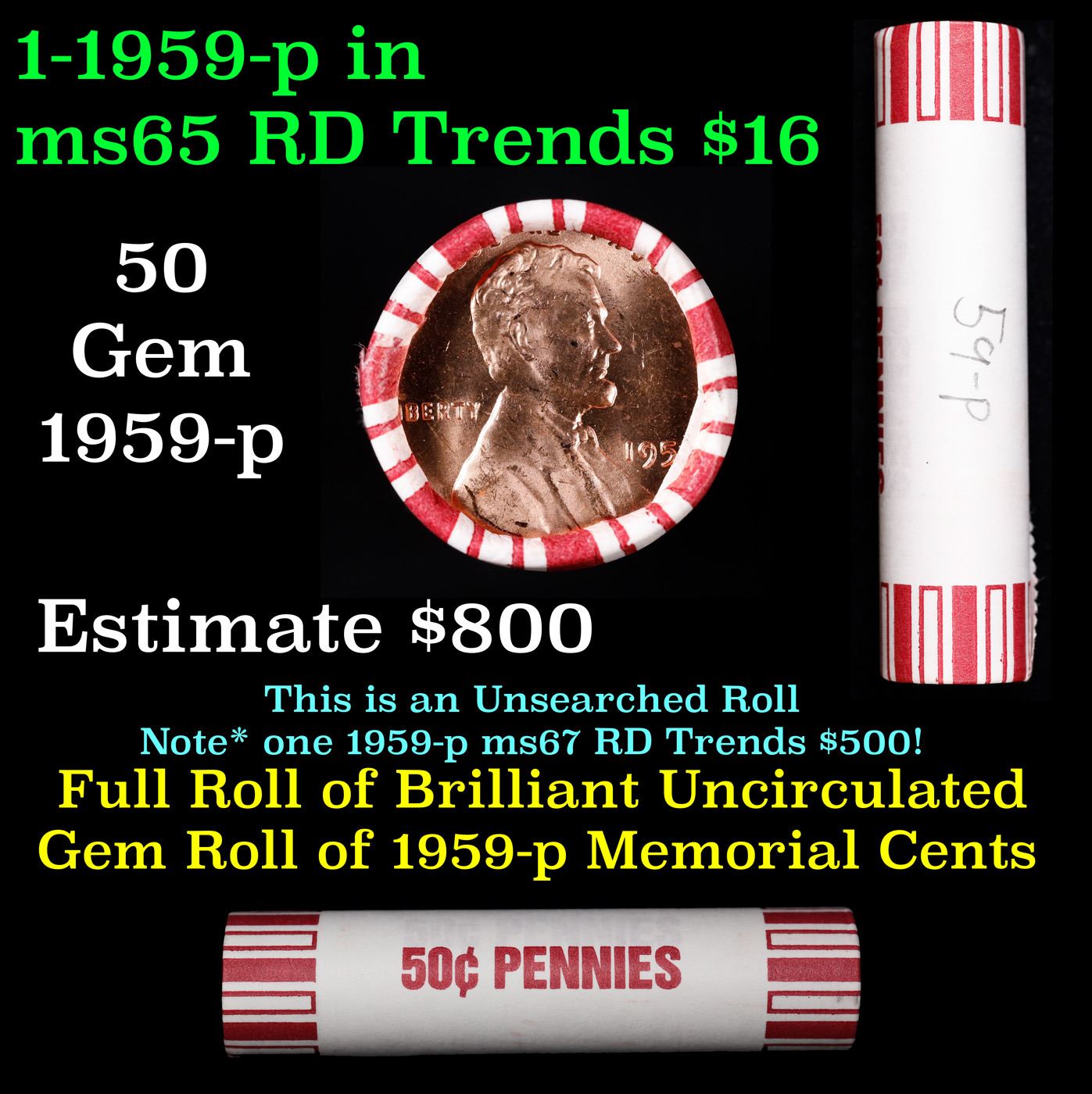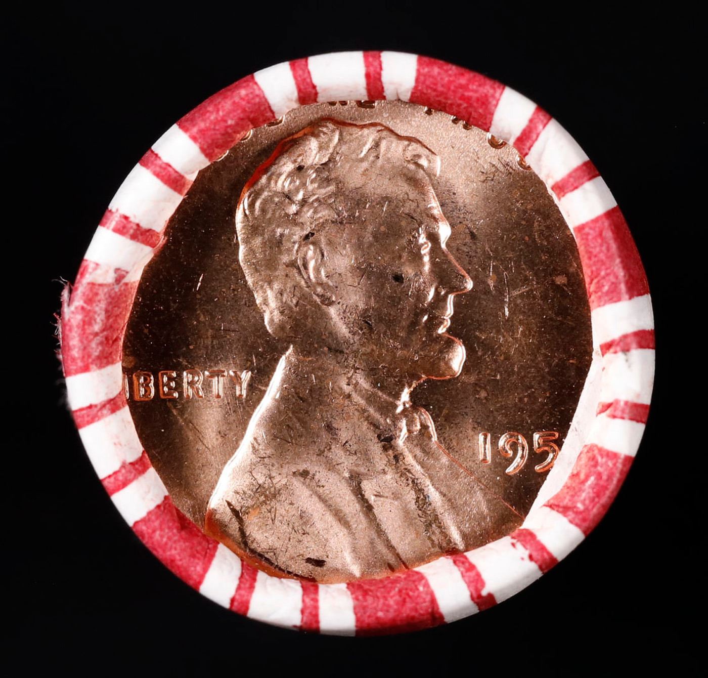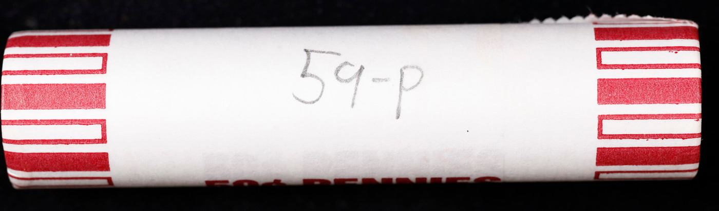 Shotgun Lincoln 1c roll, 1959-p 50 pcs Brandt 50c Wrapper.. A terrific Shotgun roll of Lincoln cents. Most if not all coin should be cherry red.