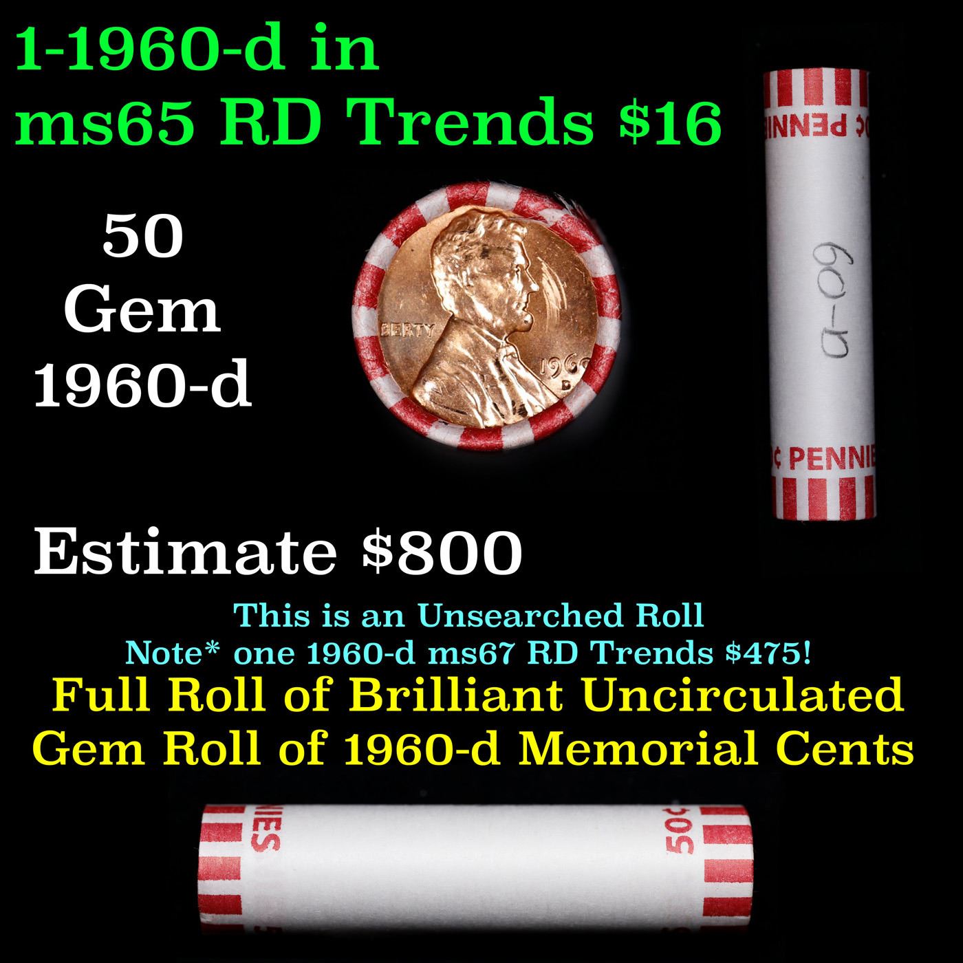 Shotgun Lincoln 1c roll, 1960-d 50 pcs Bank Wrapper.. A terrific Shotgun roll of Lincoln cents. Most if not all coin should be cherry red.