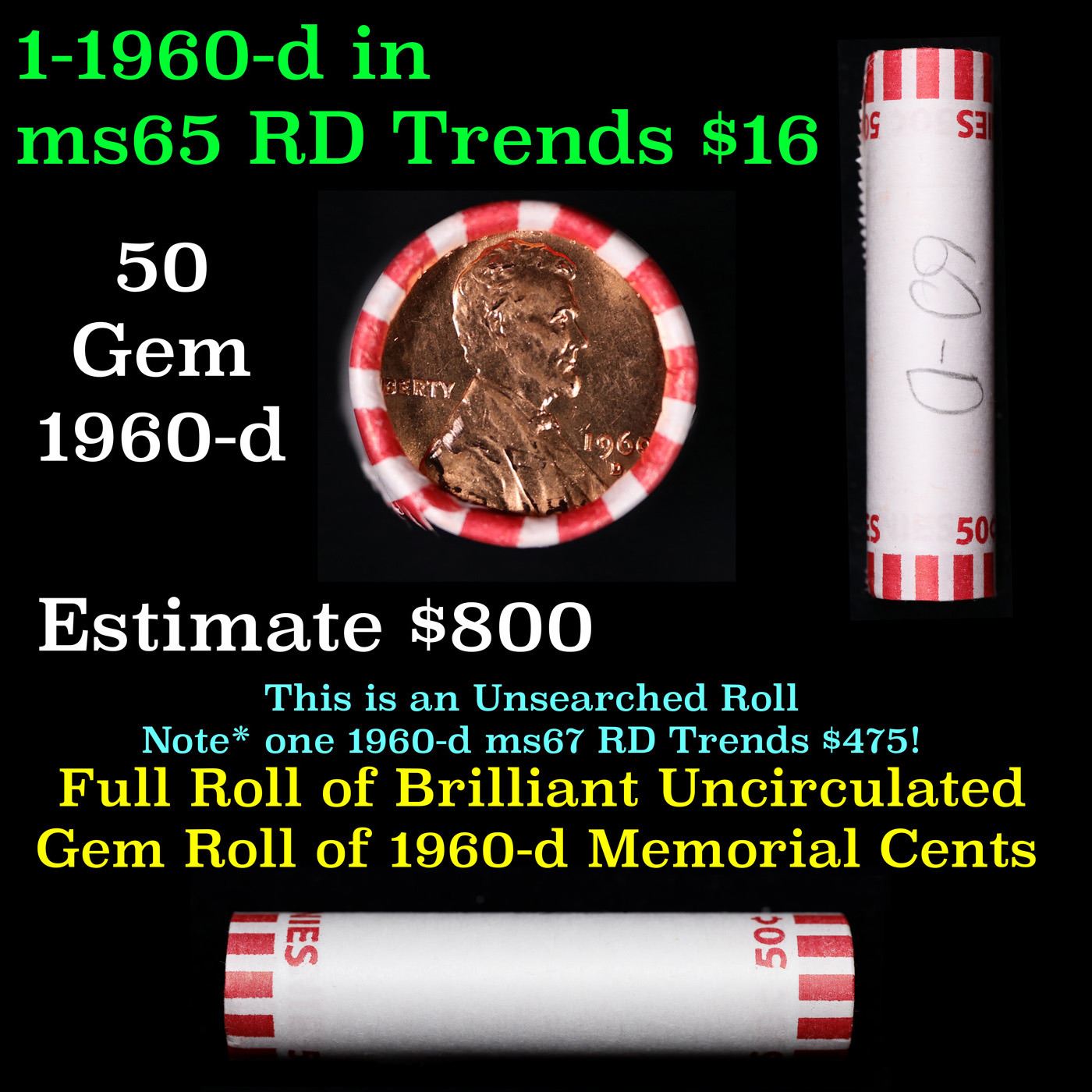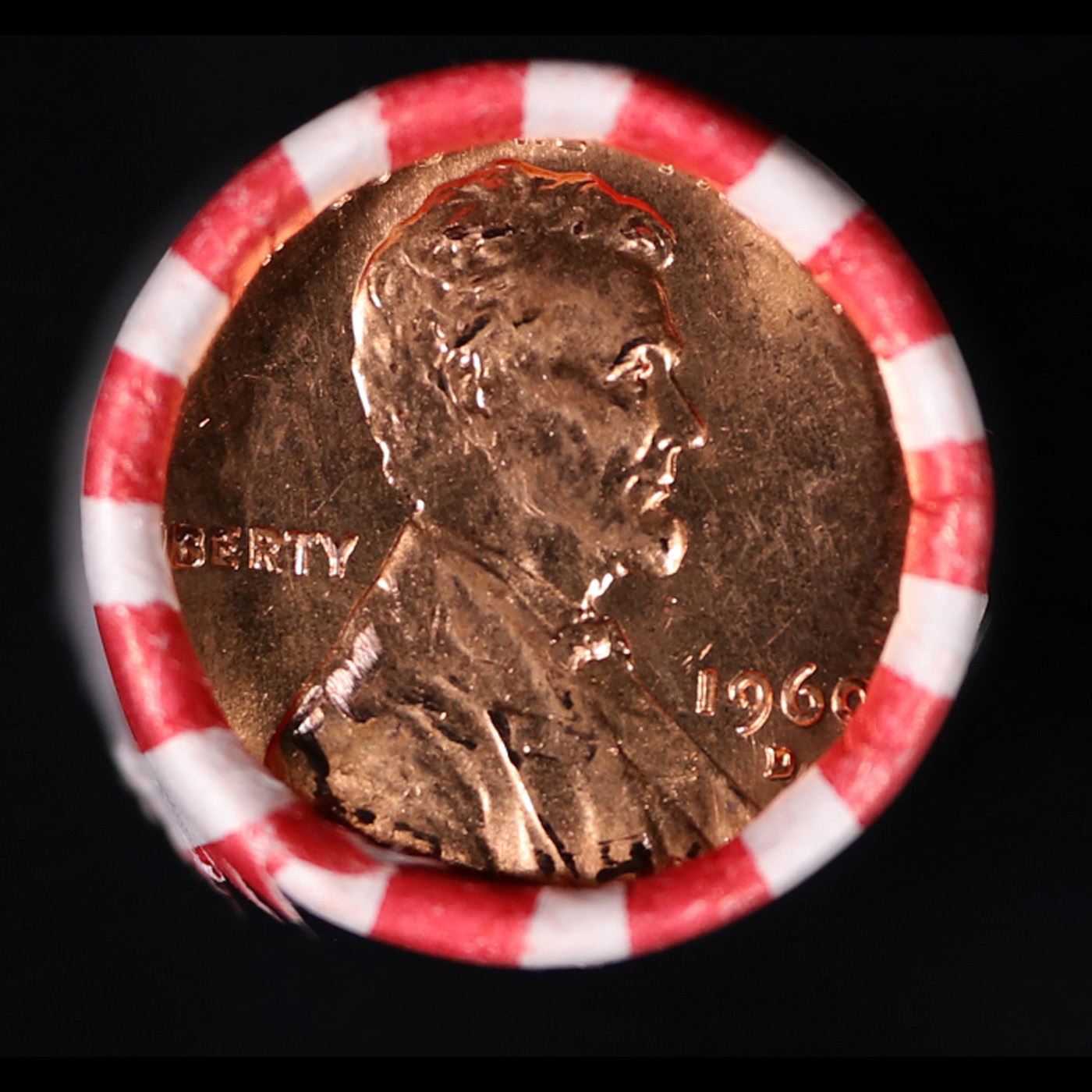 Shotgun Lincoln 1c roll, 1960-d 50 pcs Bank Wrapper.. A terrific Shotgun roll of Lincoln cents. Most if not all coin should be cherry red.