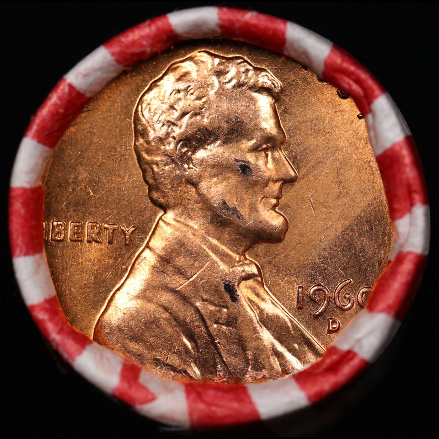 Shotgun Lincoln 1c roll, 1960-d 50 pcs Bank Wrapper.. A terrific Shotgun roll of Lincoln cents. Most if not all coin should be cherry red.