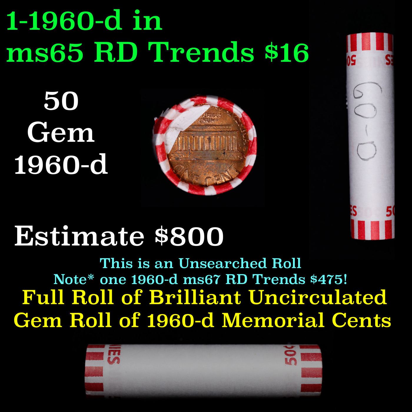 Shotgun Lincoln 1c roll, 1960-d 50 pcs Bank Wrapper.. A terrific Shotgun roll of Lincoln cents. Most if not all coin should be cherry red.