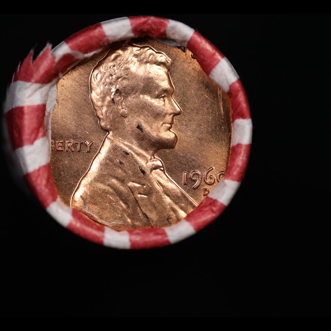 Shotgun Lincoln 1c roll, 1960-d 50 pcs Bank Wrapper.. A terrific Shotgun roll of Lincoln cents. Most if not all coin should be cherry red.