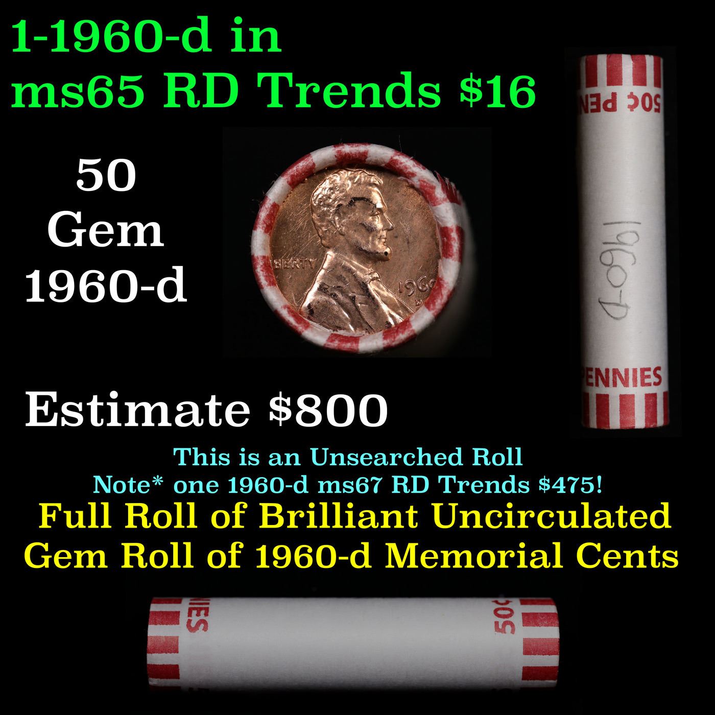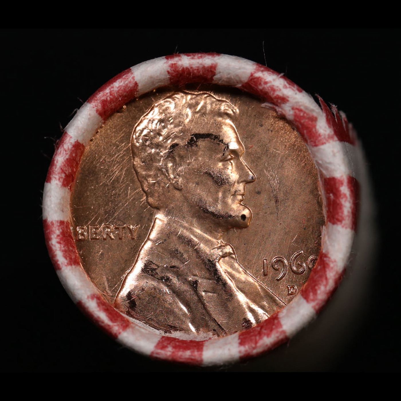 Shotgun Lincoln 1c roll, 1960-d 50 pcs Bank Wrapper.. A terrific Shotgun roll of Lincoln cents. Most if not all coin should be cherry red.