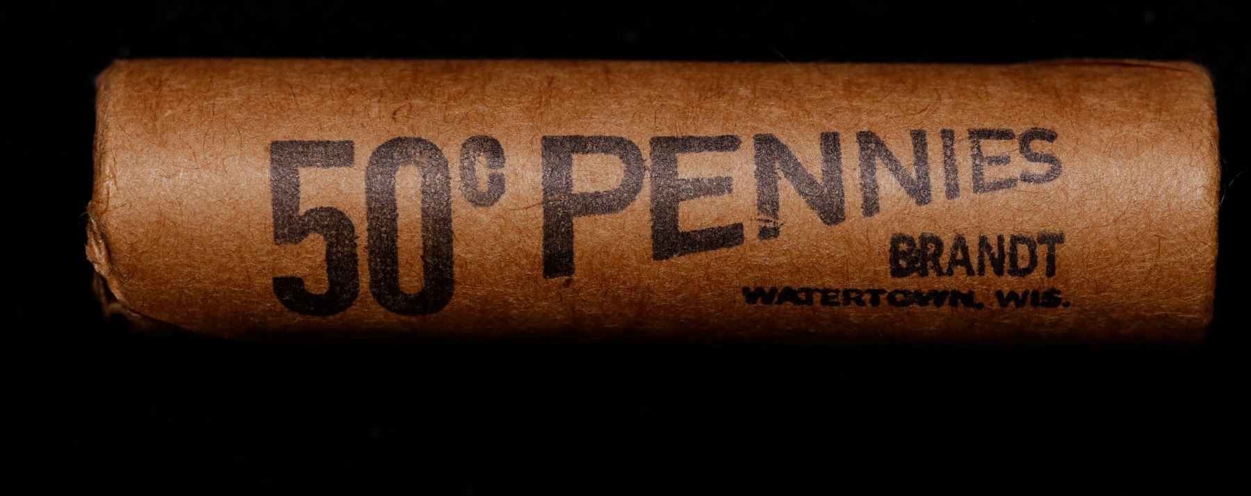 Shotgun Lincoln 1c roll, 1960-d 50 pcs Brandt Wrapper.. A terrific Shotgun roll of Lincoln cents. Most if not all coin should be cherry red.