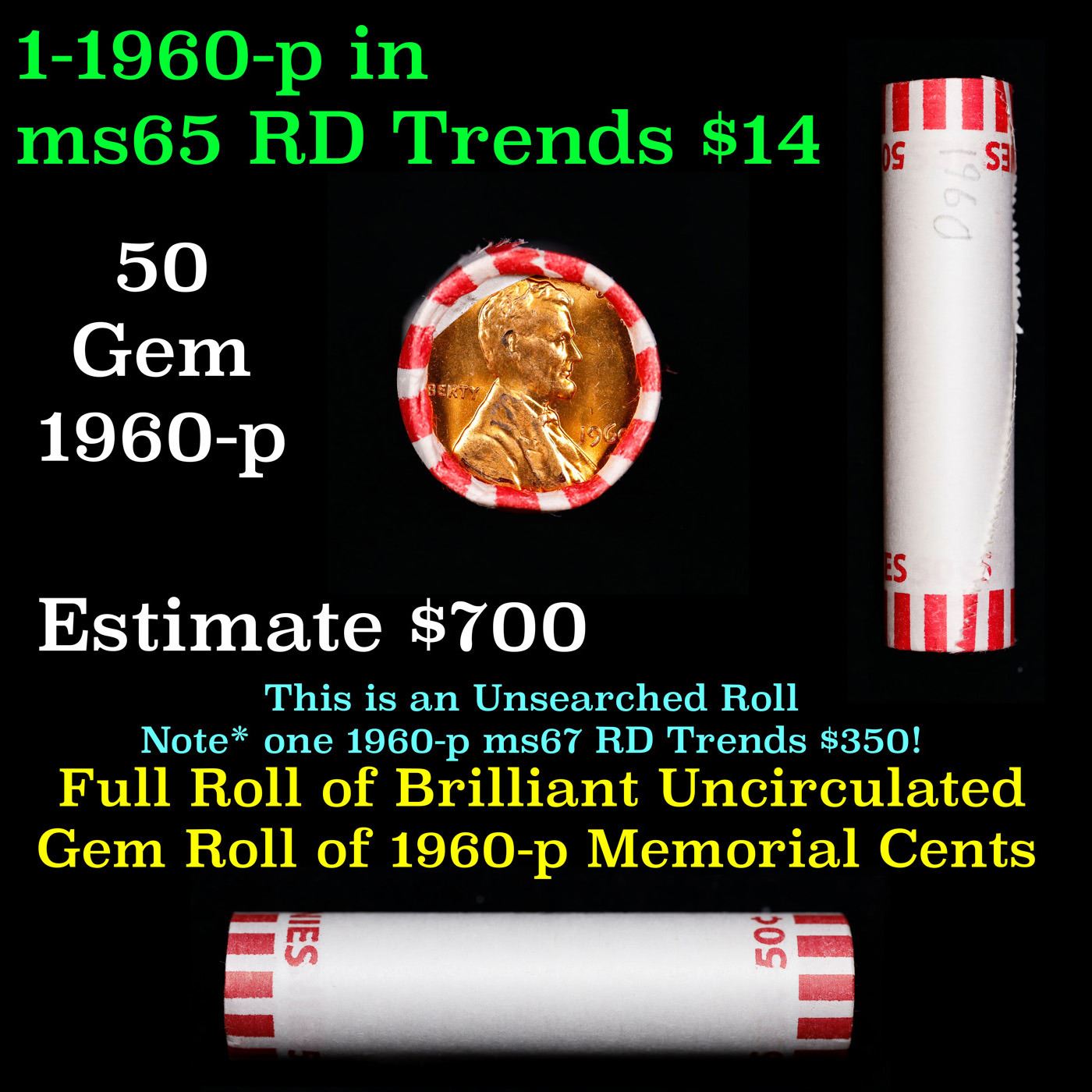Shotgun Lincoln 1c roll, 1960-p 50 pcs Bank Wrapper.. A terrific Shotgun roll of Lincoln cents. Most if not all coin should be cherry red.