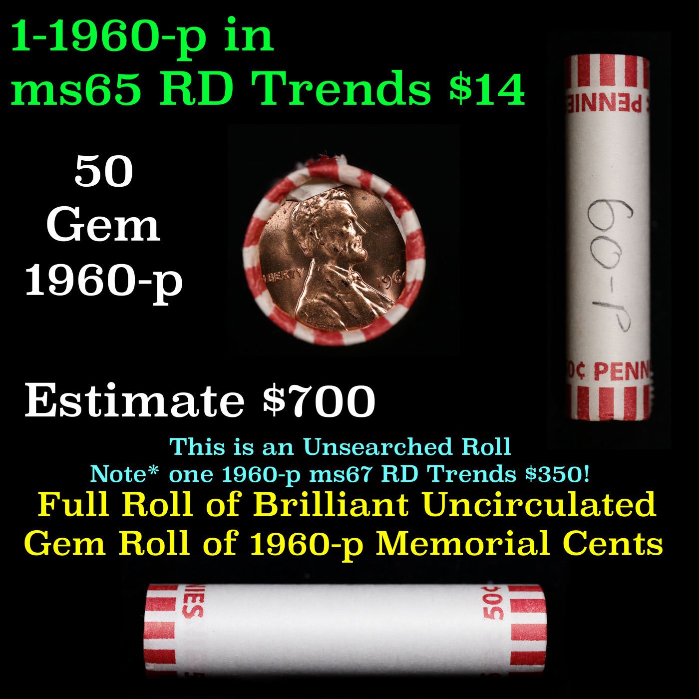 Shotgun Lincoln 1c roll, 1960-p 50 pcs Bank Wrapper.