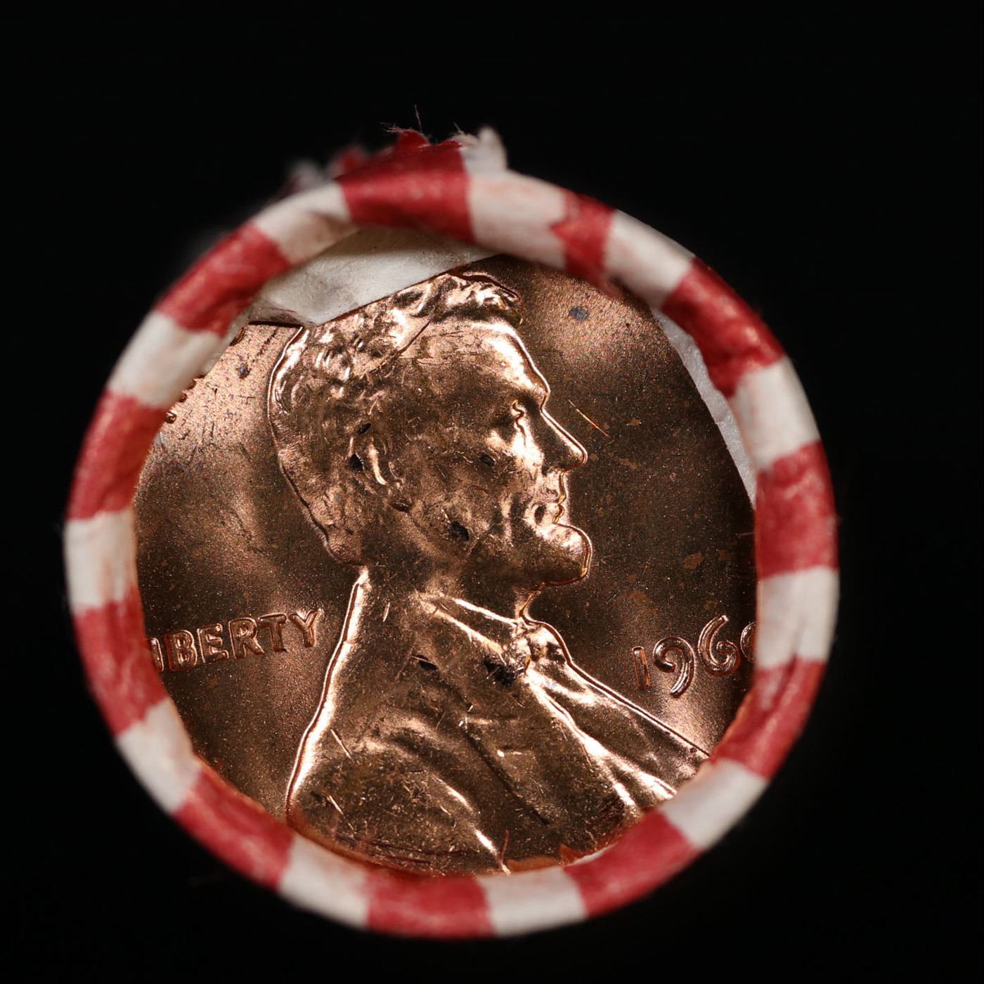 Shotgun Lincoln 1c roll, 1960-p 50 pcs Bank Wrapper.. A terrific Shotgun roll of Lincoln cents. Most if not all coin should be cherry red.