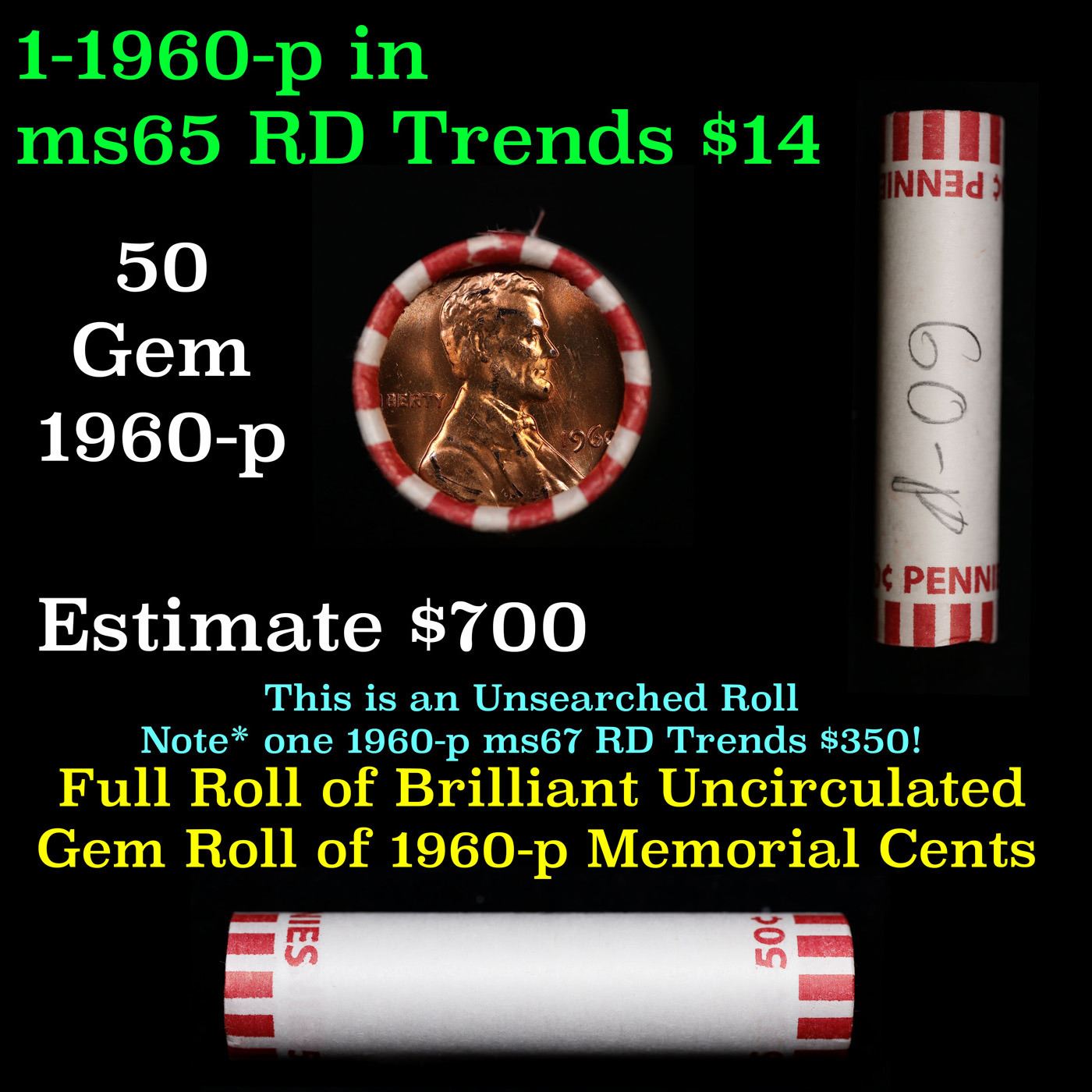 Shotgun Lincoln 1c roll, 1960-p 50 pcs Bank Wrapper.. A terrific Shotgun roll of Lincoln cents. Most if not all coin should be cherry red.