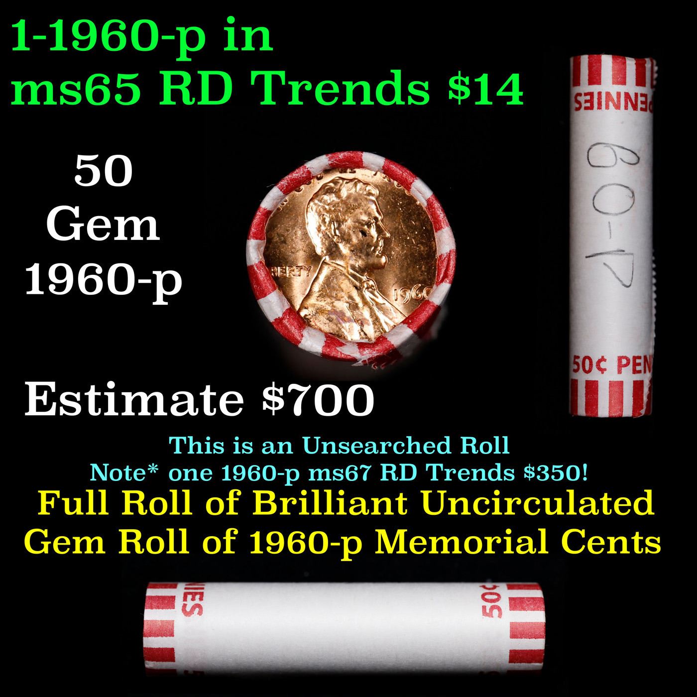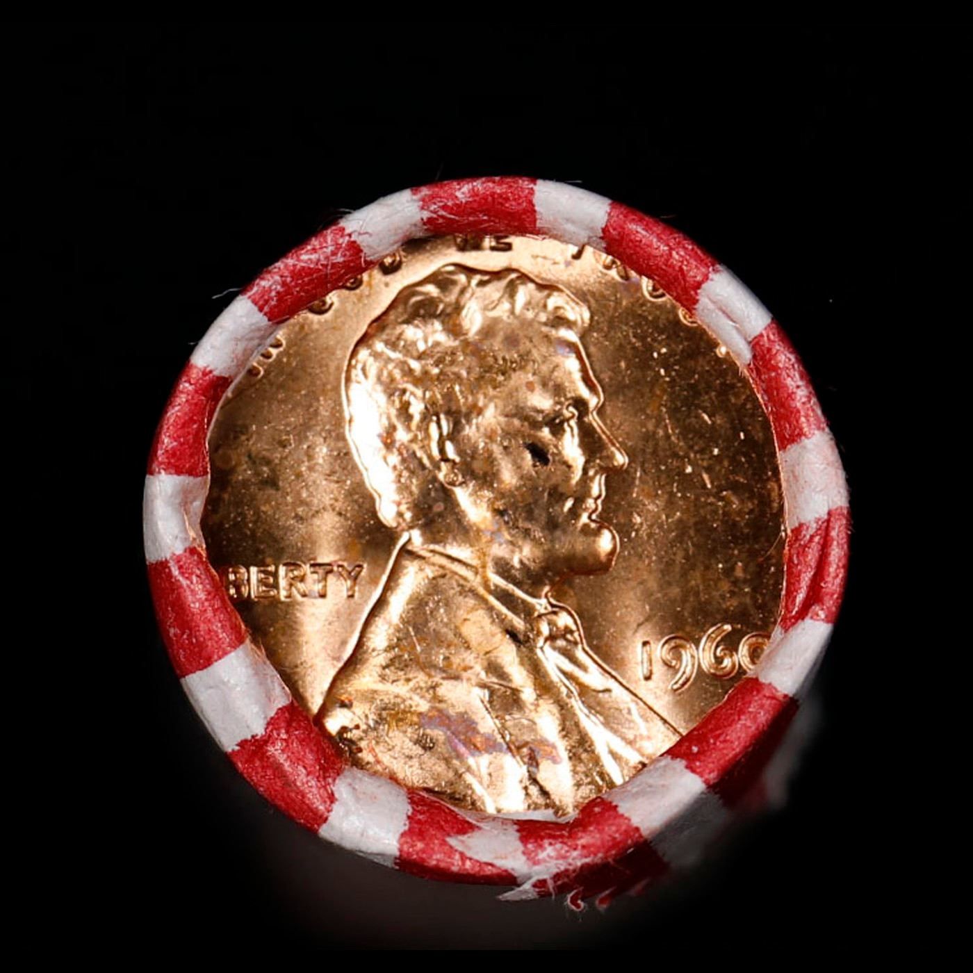 Shotgun Lincoln 1c roll, 1960-p 50 pcs Bank Wrapper.. A terrific Shotgun roll of Lincoln cents. Most if not all coin should be cherry red.