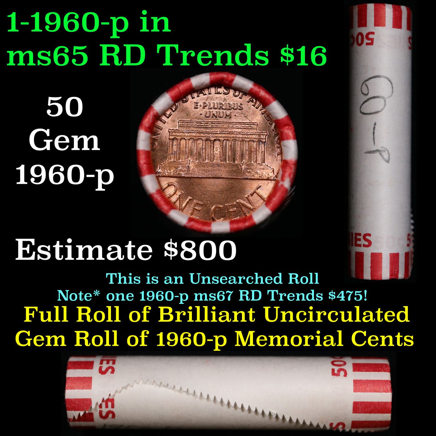 Shotgun Lincoln 1c roll, 1960-p 50 pcs Bank Wrapper.