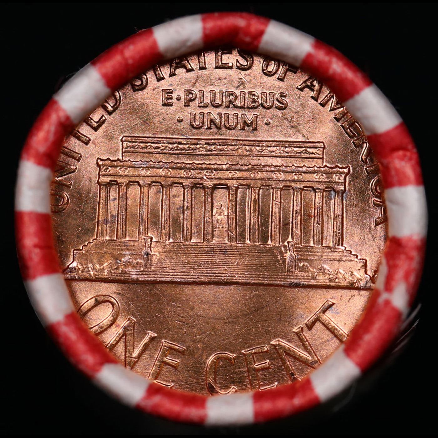 Shotgun Lincoln 1c roll, 1960-p 50 pcs Bank Wrapper.. A terrific Shotgun roll of Lincoln cents. Most if not all coin should be cherry red.
