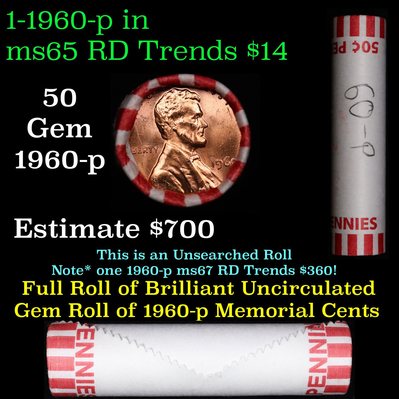 Shotgun Lincoln 1c roll, 1960-p 50 pcs Bank Wrapper.. A terrific Shotgun roll of Lincoln cents. Most if not all coin should be cherry red.