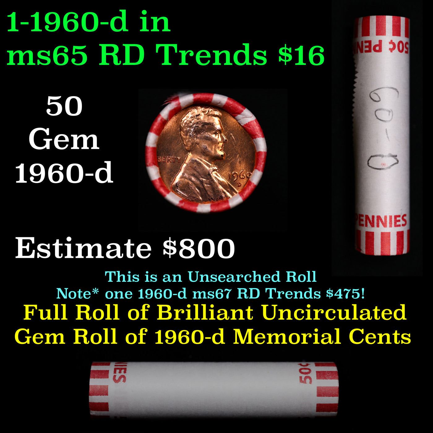 Shotgun Lincoln 1c roll, 1960-p 50 pcs Bank Wrapper.. A terrific Shotgun roll of Lincoln cents. Most if not all coin should be cherry red.