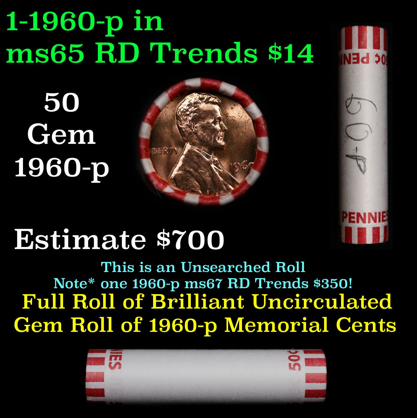 Shotgun Lincoln 1c roll, 1960-p 50 pcs Bank Wrapper.