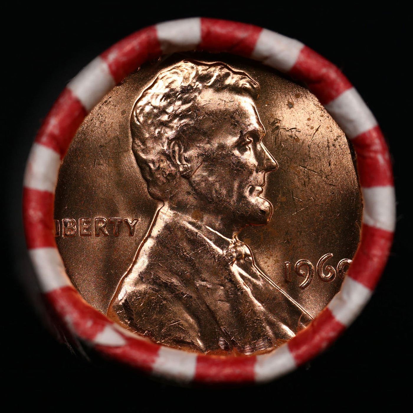Shotgun Lincoln 1c roll, 1960-p 50 pcs Bank Wrapper.. A terrific Shotgun roll of Lincoln cents. Most if not all coin should be cherry red.