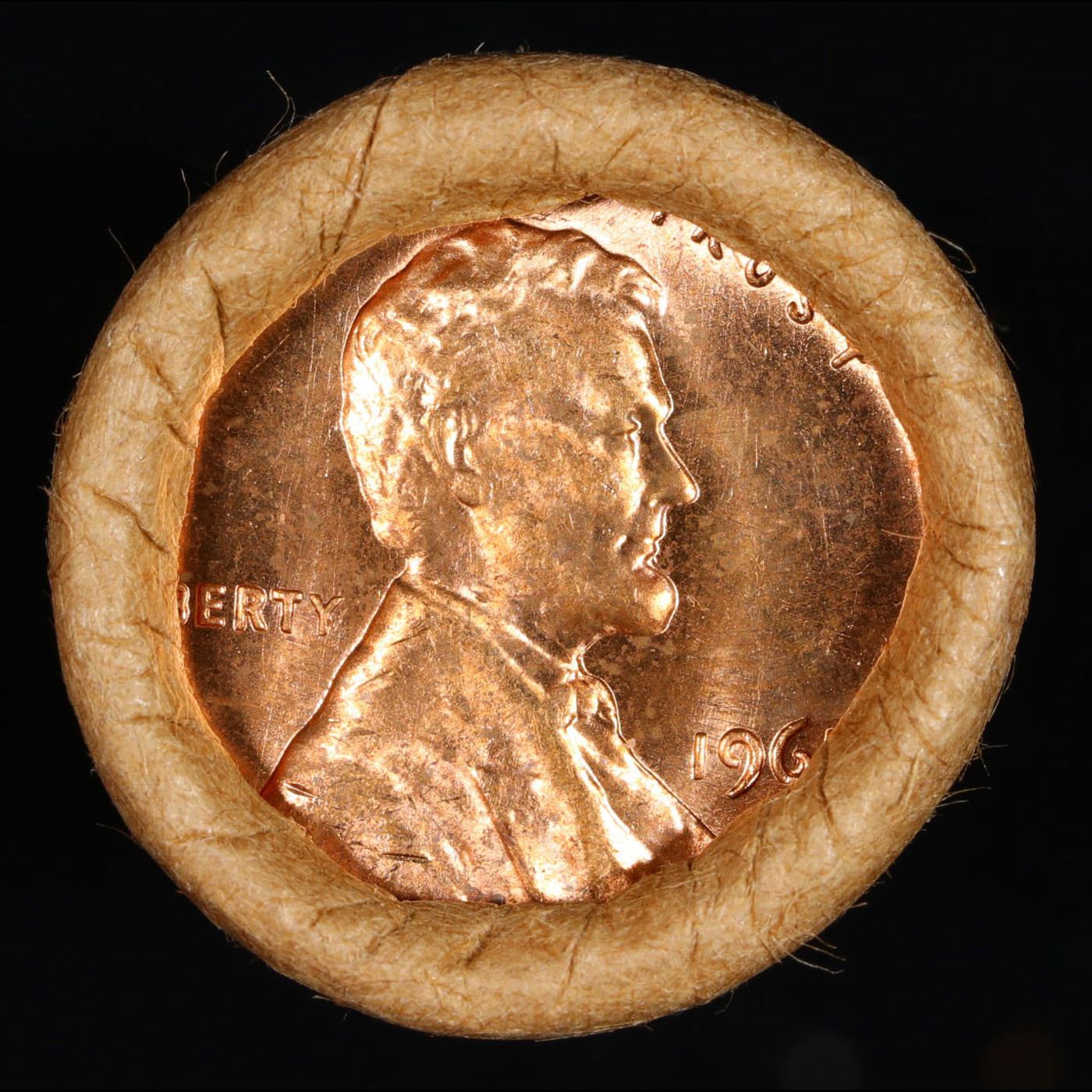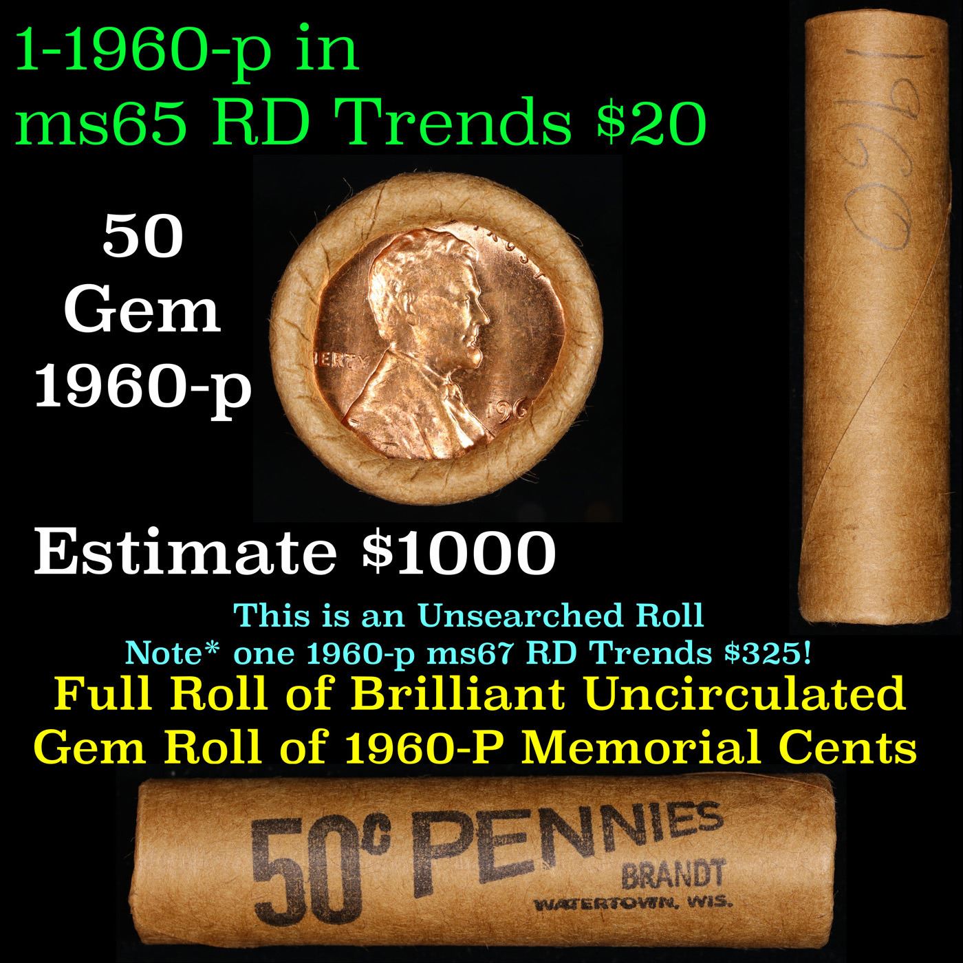 Shotgun Lincoln 1c roll, 1960-p 50 pcs Brandt Wrapper . A terrific Shotgun roll of Lincoln cents. All coins cherry red. Trends ms65 rd $14