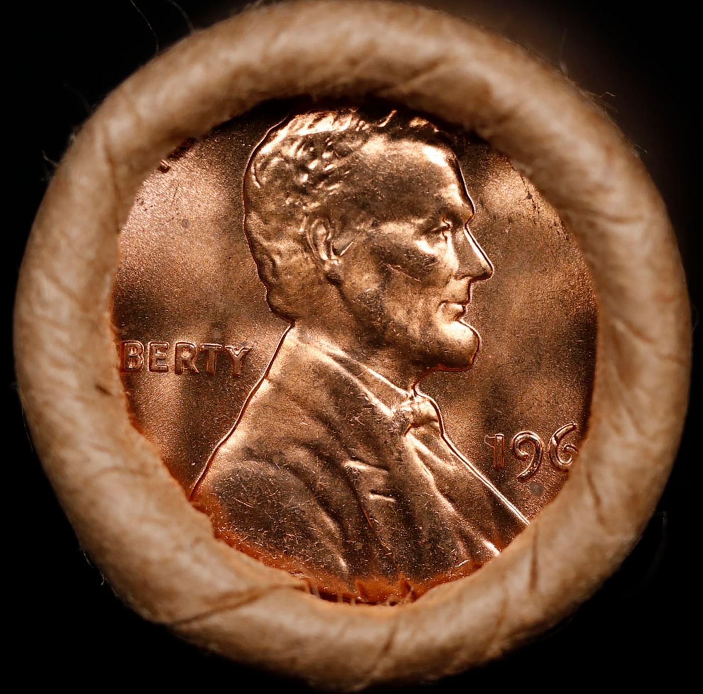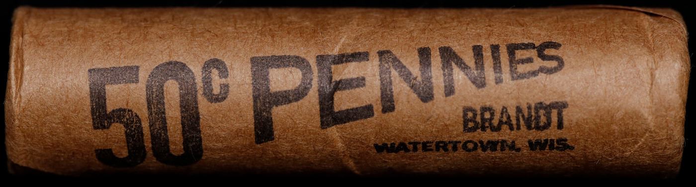 Shotgun Lincoln 1c roll, 1960-p 50 pcs Brandt Wrapper.. A terrific Shotgun roll of Lincoln cents. Most if not all coin should be cherry red.