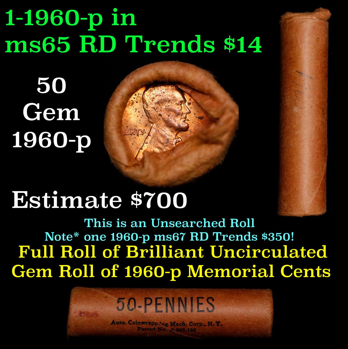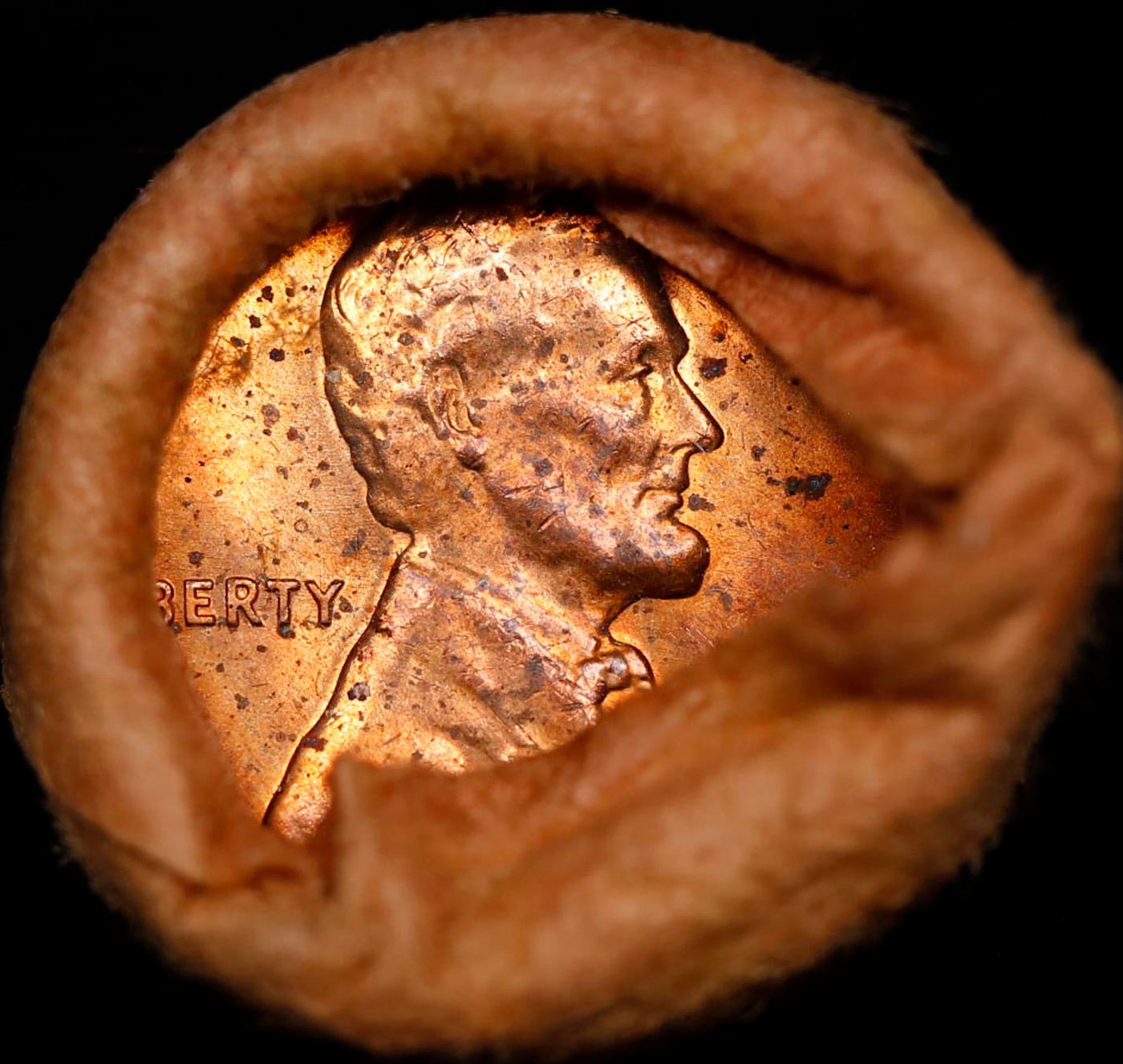 Shotgun Lincoln 1c roll, 1960-p 50 pcs Coinwrapping Wrapper.. A terrific Shotgun roll of Lincoln cents. Most if not all coin should be cherry red.