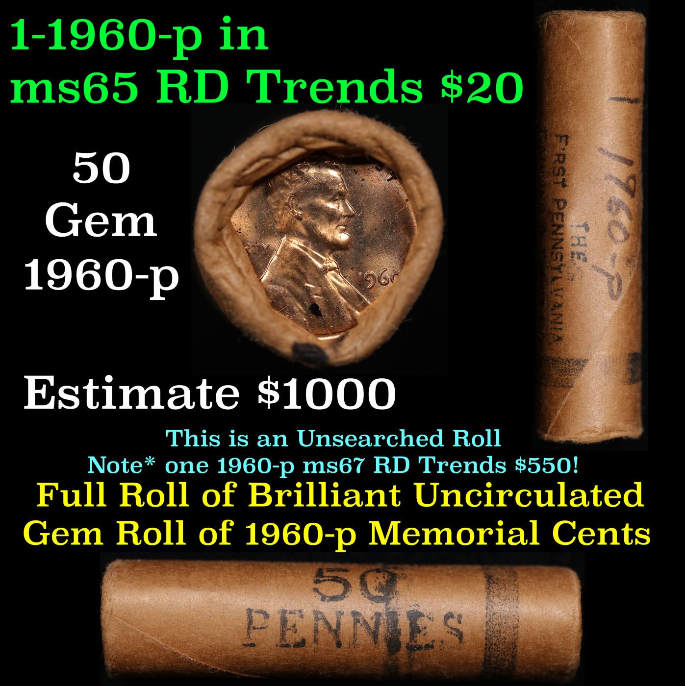 Shotgun Lincoln 1c roll, 1960-p 50 pcs First Pennsylvania Bank Wrapper.