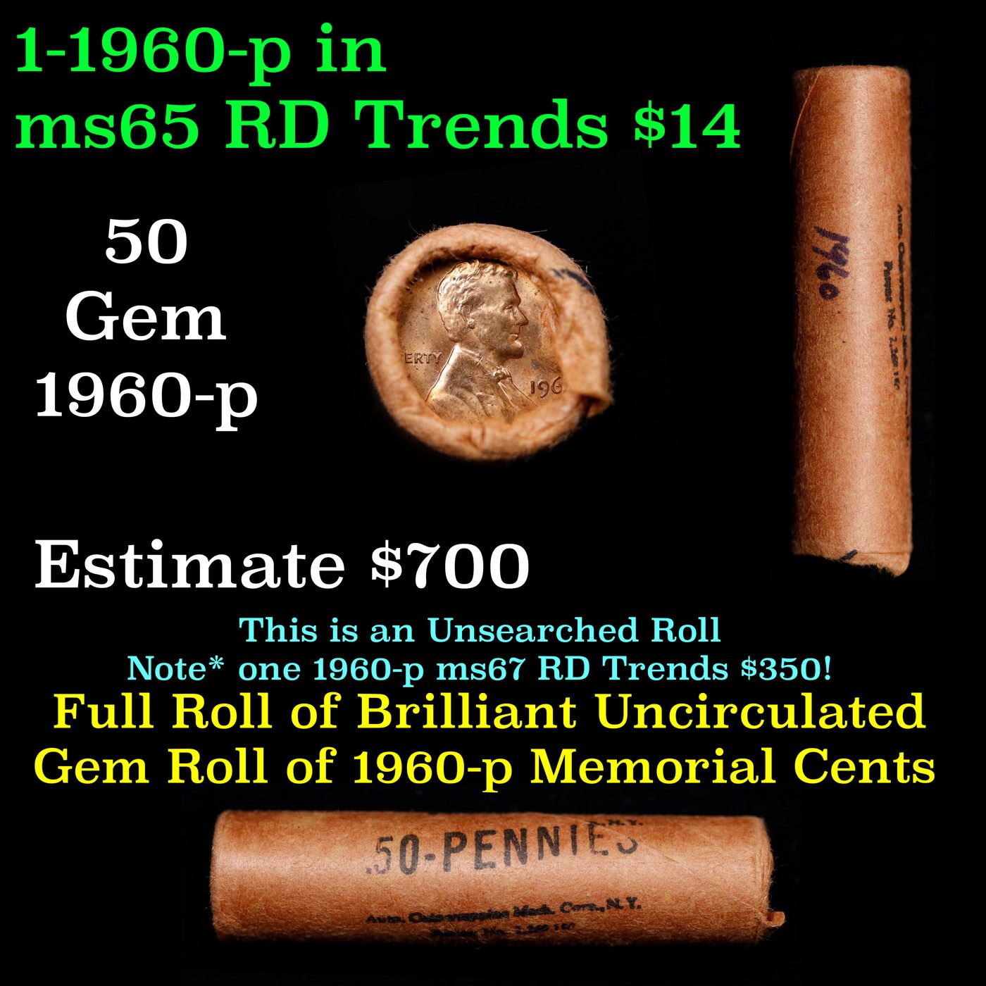Shotgun Lincoln 1c roll, 1960-p 50 pcs Steel Strong Wrapper . A terrific Shotgun roll of Lincoln cents. All coins appear to be cherry red. Trends ms65 rd $14