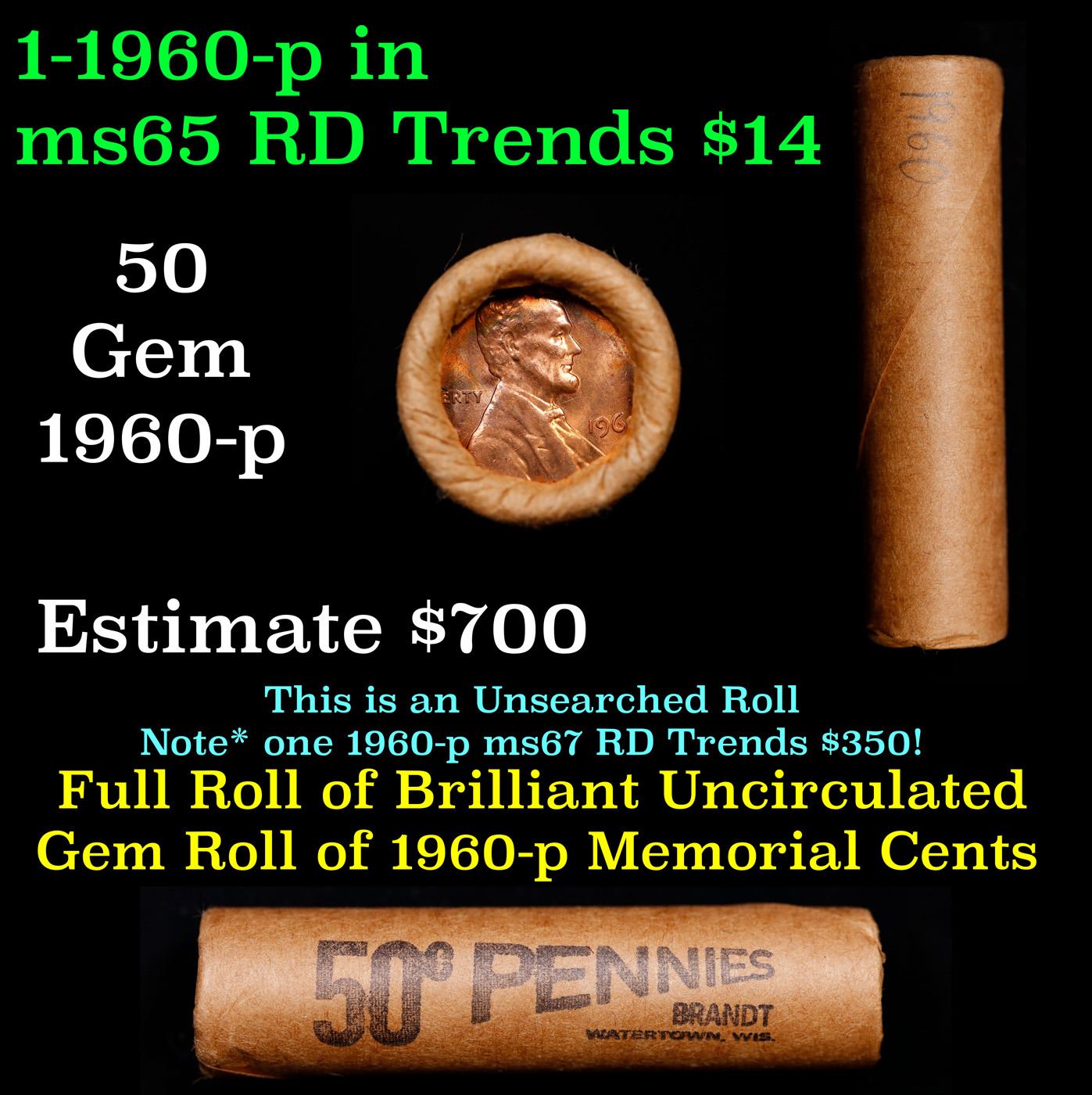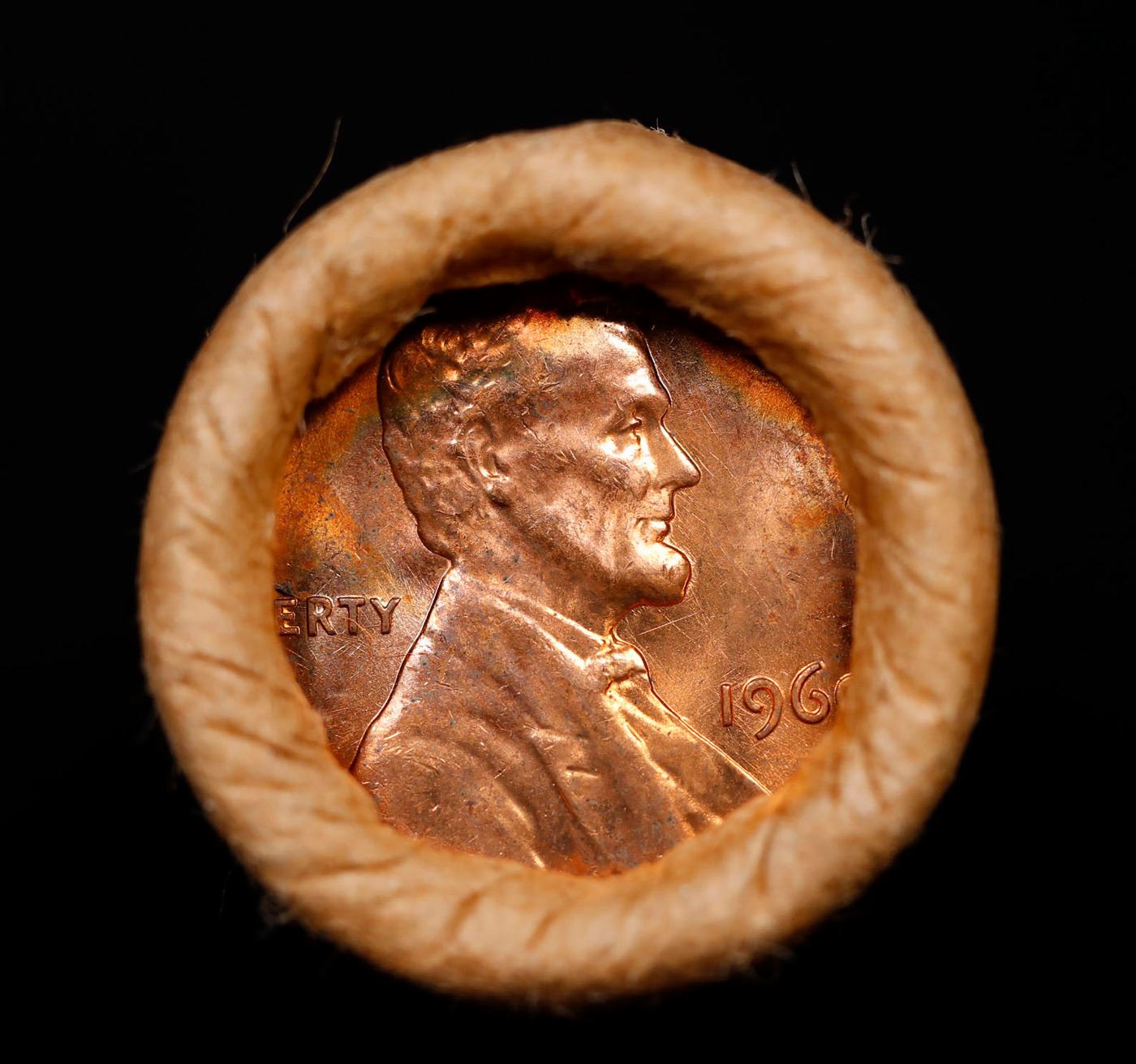 Shotgun Lincoln 1c roll, 1960-p 50 pcs Steel-Strong Wrapper.. A terrific Shotgun roll of Lincoln cents. Most if not all coin should be cherry red.