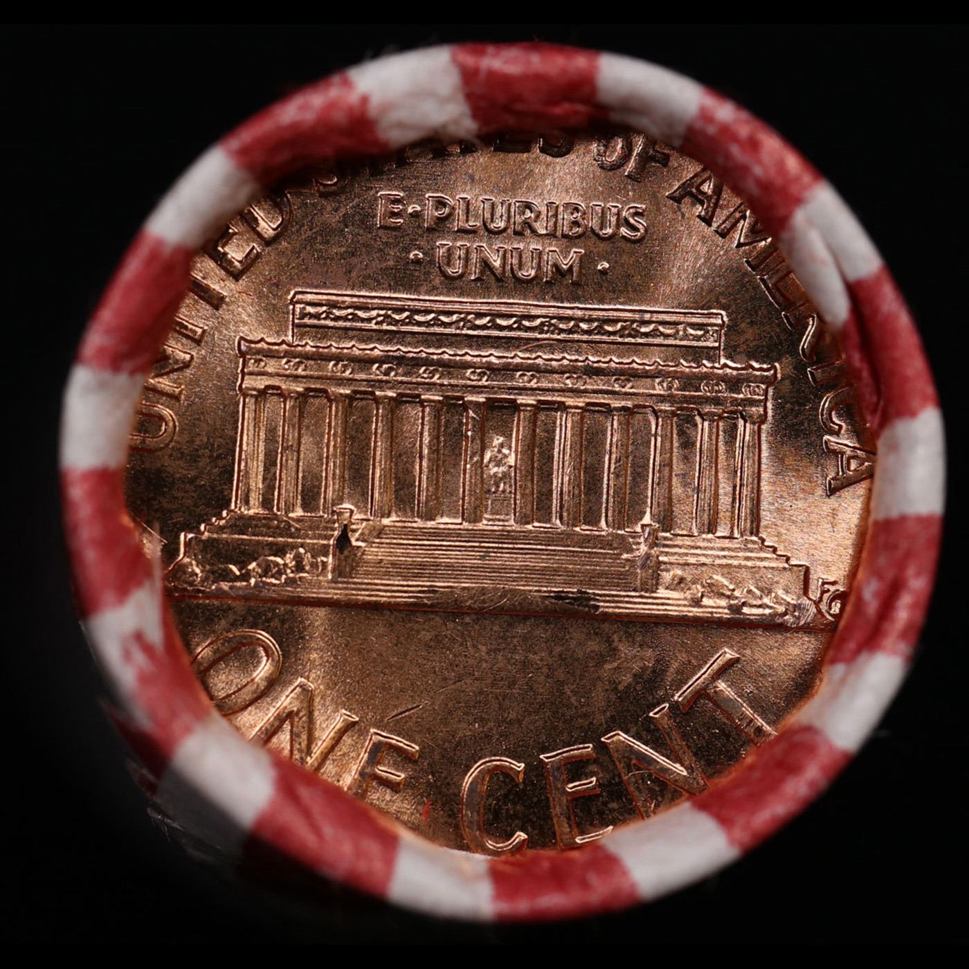 Shotgun Lincoln 1c roll, 1961-d 50 pcs Bank Wrapper.. A terrific Shotgun roll of Lincoln cents. Most if not all coin should be cherry red.