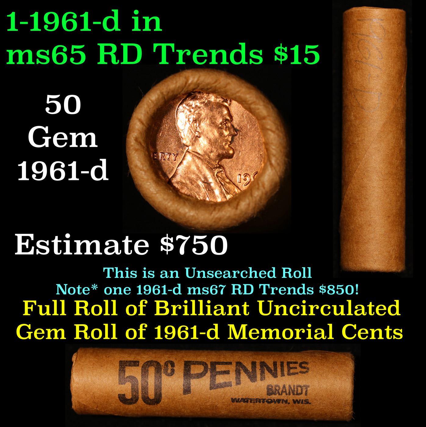 Shotgun Lincoln 1c roll, 1961-d 50 pcs Brandt Wrapper .