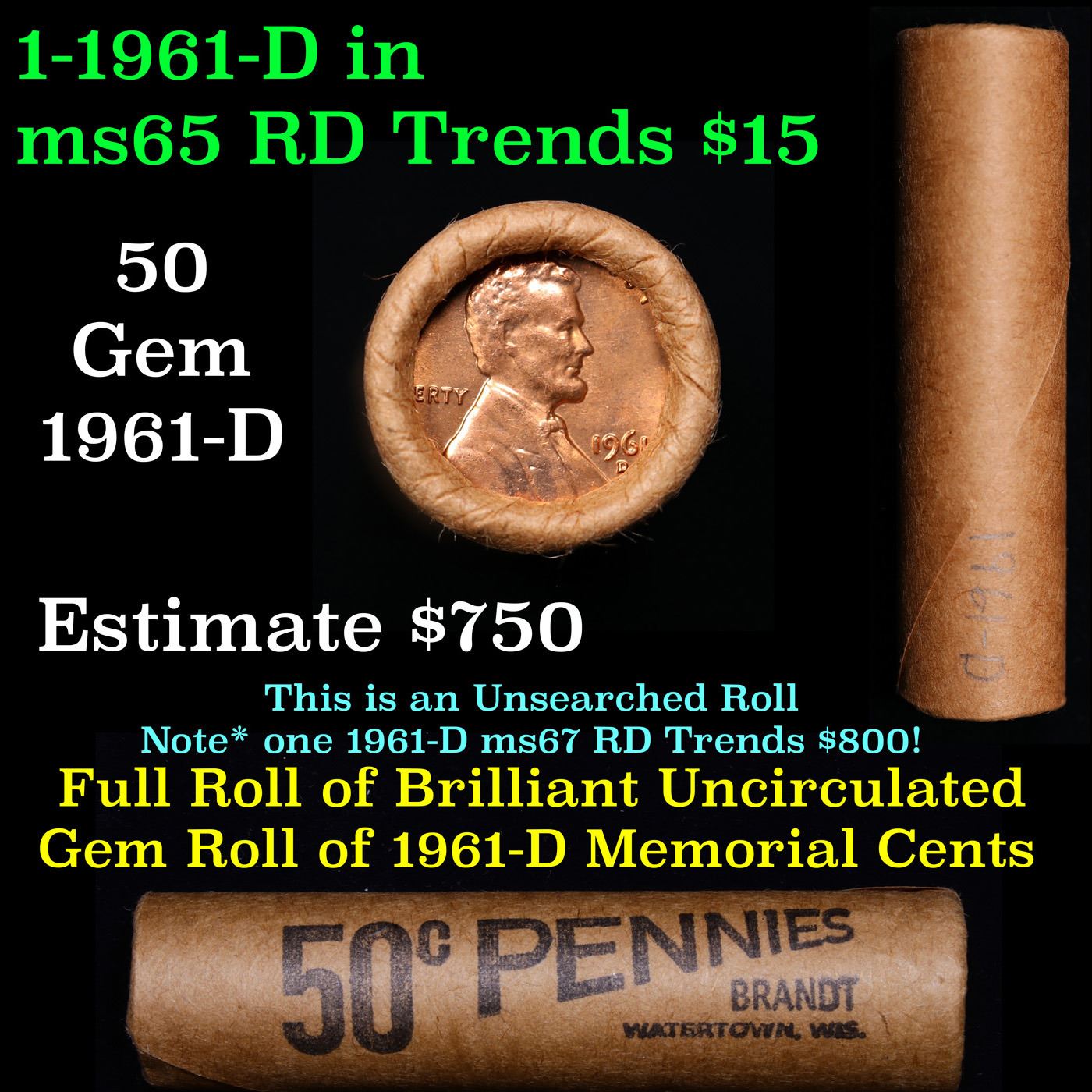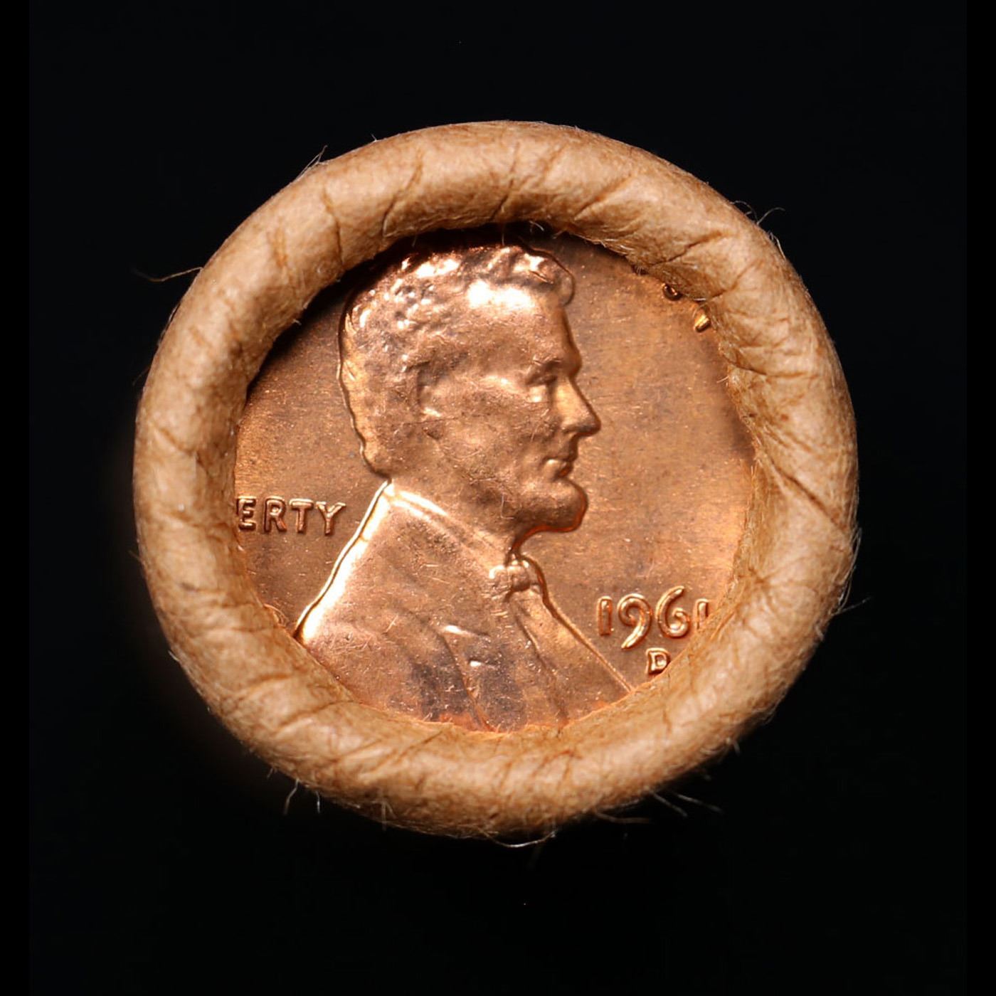 Shotgun Lincoln 1c roll, 1961-d 50 pcs Brandt Wrapper.. A terrific Shotgun roll of Lincoln cents. Most if not all coin should be cherry red. Trends ms65 rd $15