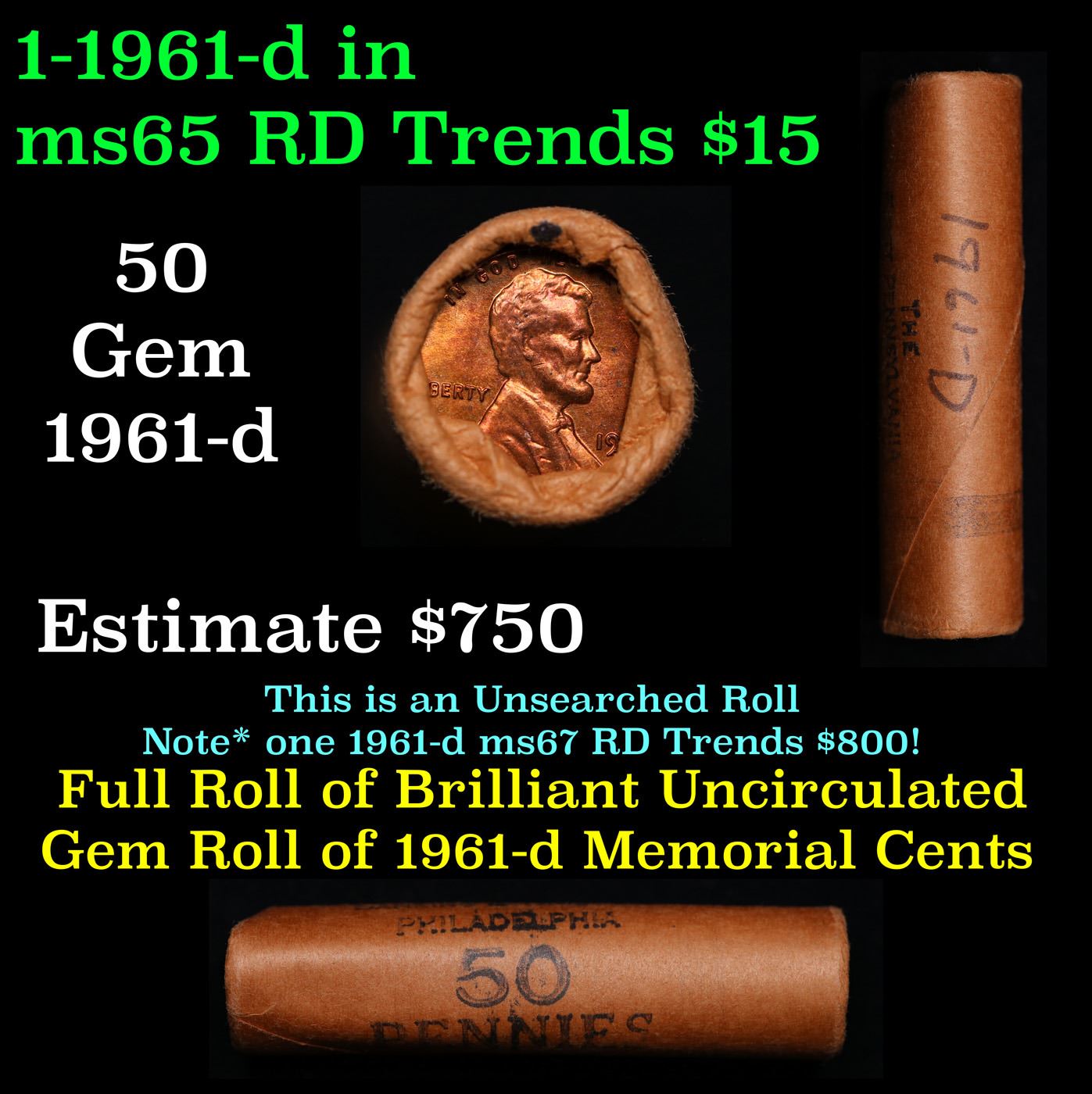 Shotgun Lincoln 1c roll, 1961-d 50 pcs The First Pennsylvania Bank Wrapper.. A terrific Shotgun roll of Lincoln cents. Most if not all coin should be cherry red.