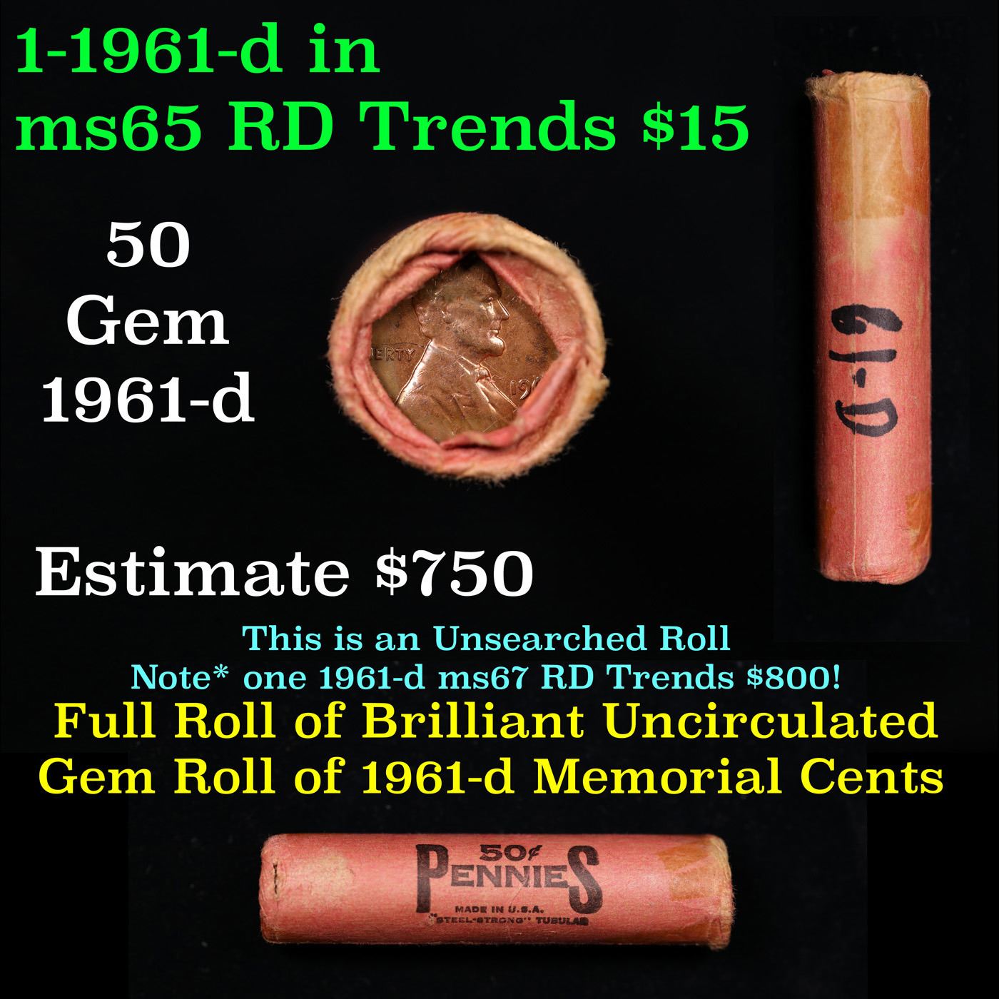 Shotgun Lincoln 1c roll, 1961-d 50 pcs Vintage "Steel-Strong" Tubular Wrapper.. A terrific Shotgun roll of Lincoln cents. Most if not all coin should be cherry red. Trends ms65 rd $15