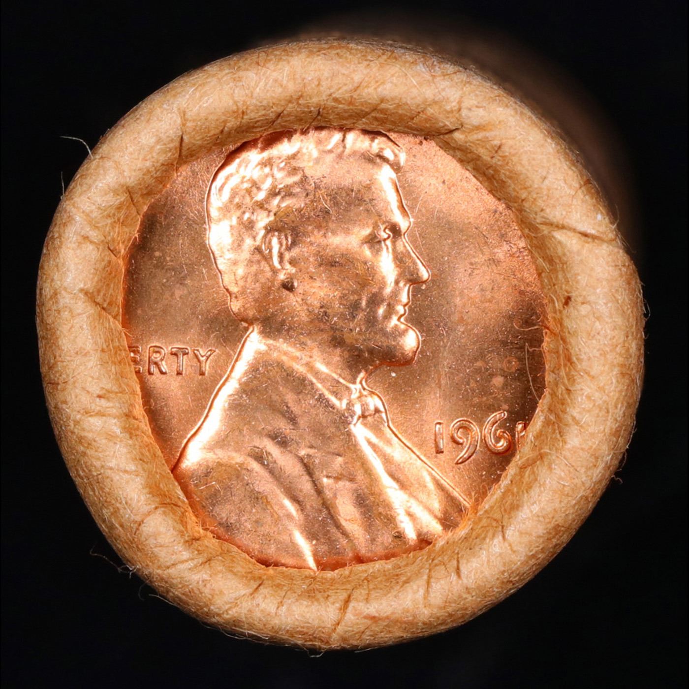 Shotgun Lincoln 1c roll, 1961-p 50 pcs Brandt Wrapper.. A terrific Shotgun roll of Lincoln cents. Most if not all coin should be cherry red.