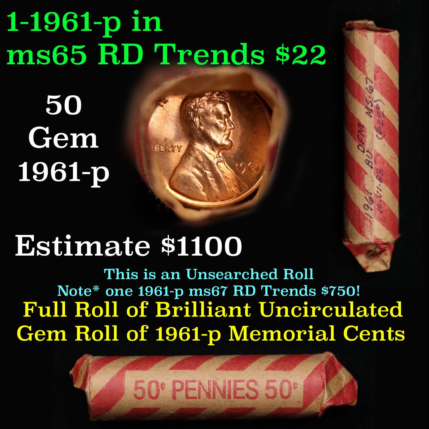 Shotgun Lincoln 1c roll, 1961-p 50 pcs Pennies Wrapper.