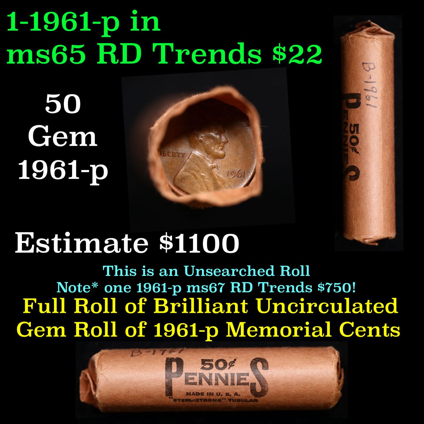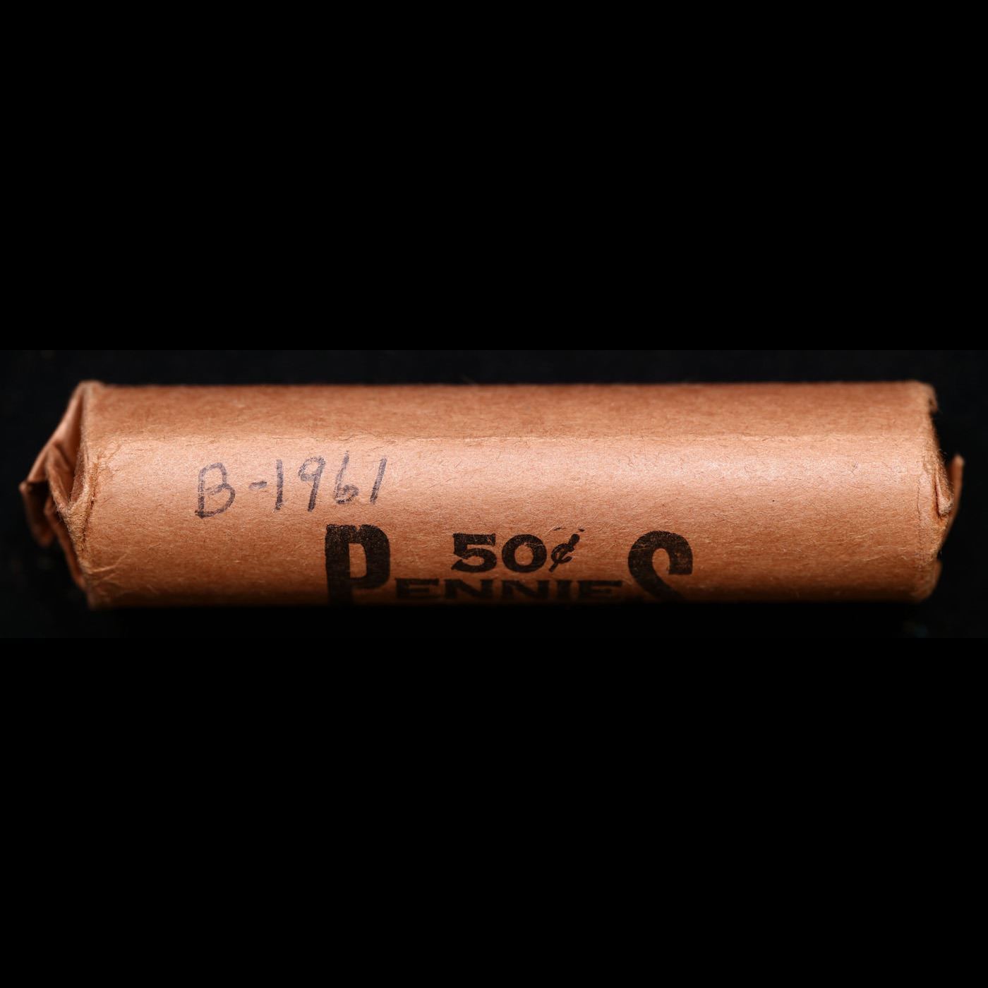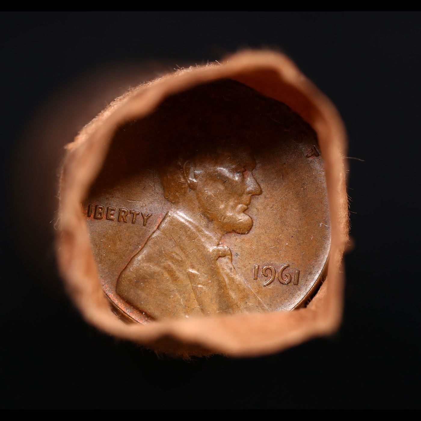 Shotgun Lincoln 1c roll, 1961-p 50 pcs Steel Strong Wrapper.. A terrific Shotgun roll of Lincoln cents. Most if not all coin should be cherry red.