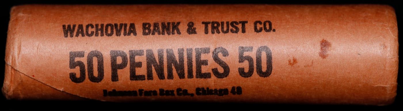 Shotgun Lincoln 1c roll, 1961-p 50 pcs Wachovia Bank Wrapper.