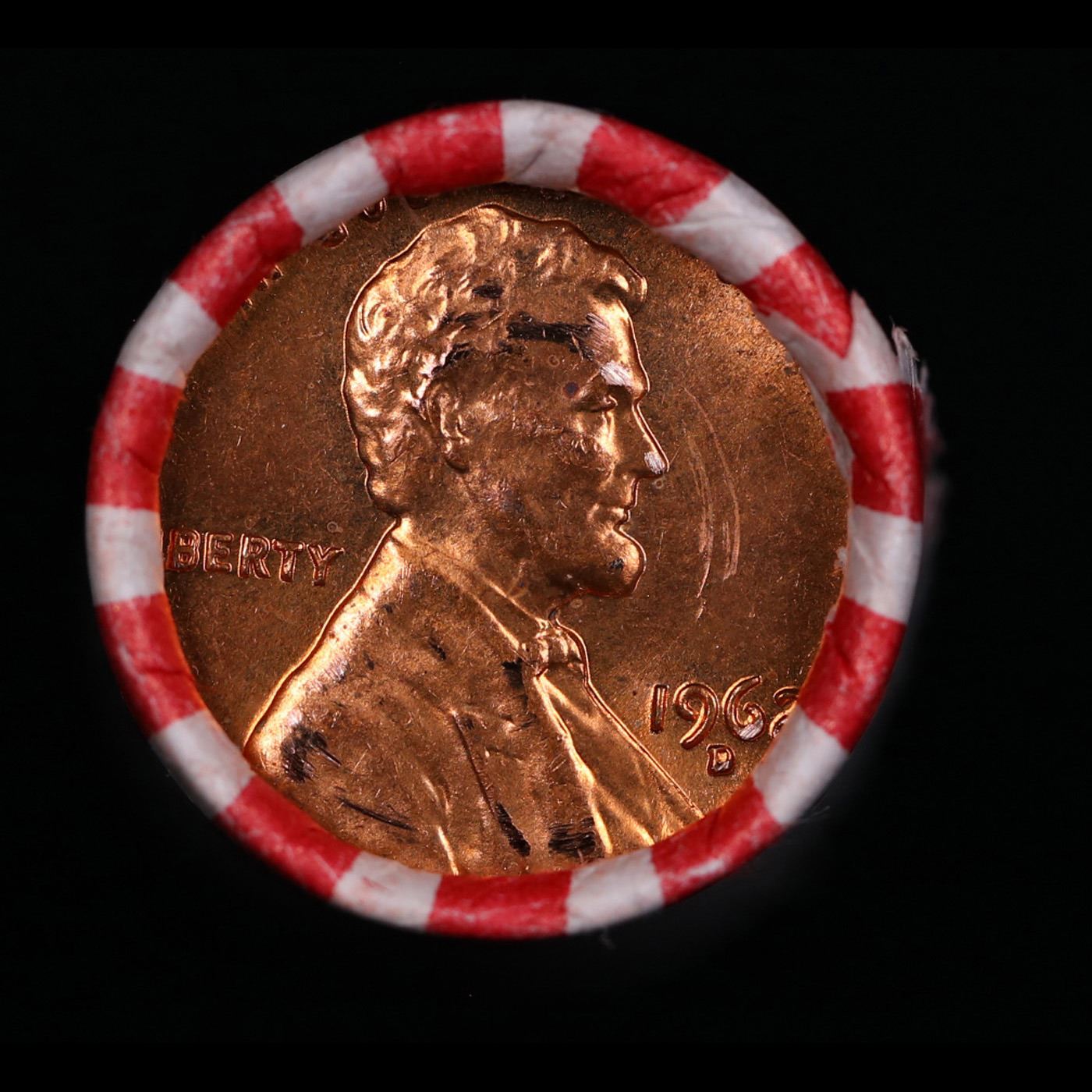 Shotgun Lincoln 1c roll, 1962-d 50 pcs Bank Wrapper.. A terrific Shotgun roll of Lincoln cents. Most if not all coin should be cherry red.
