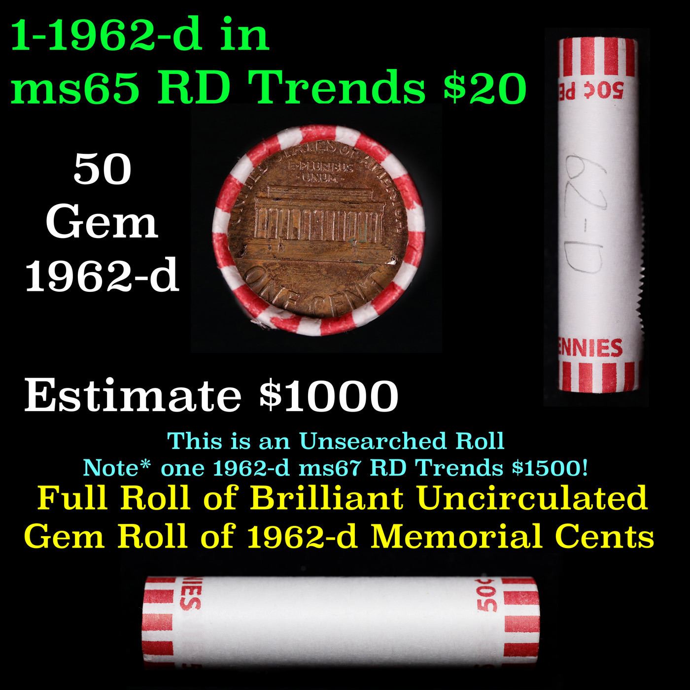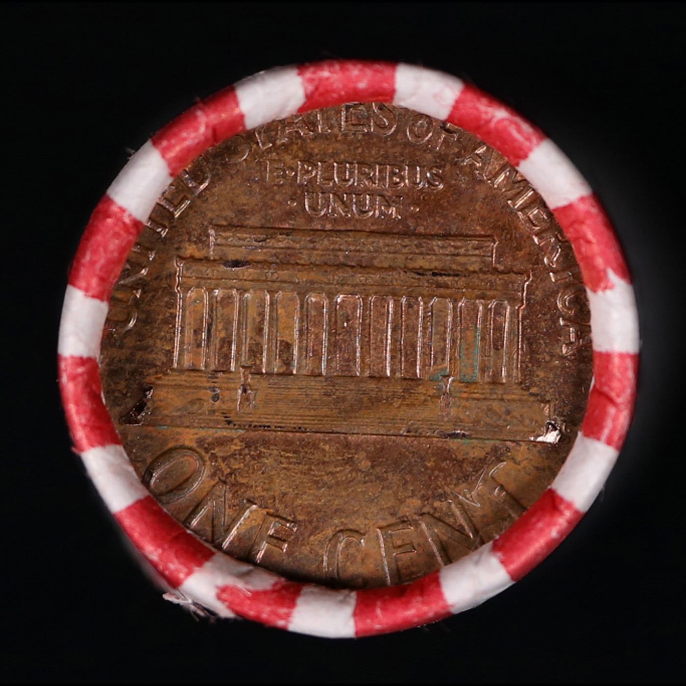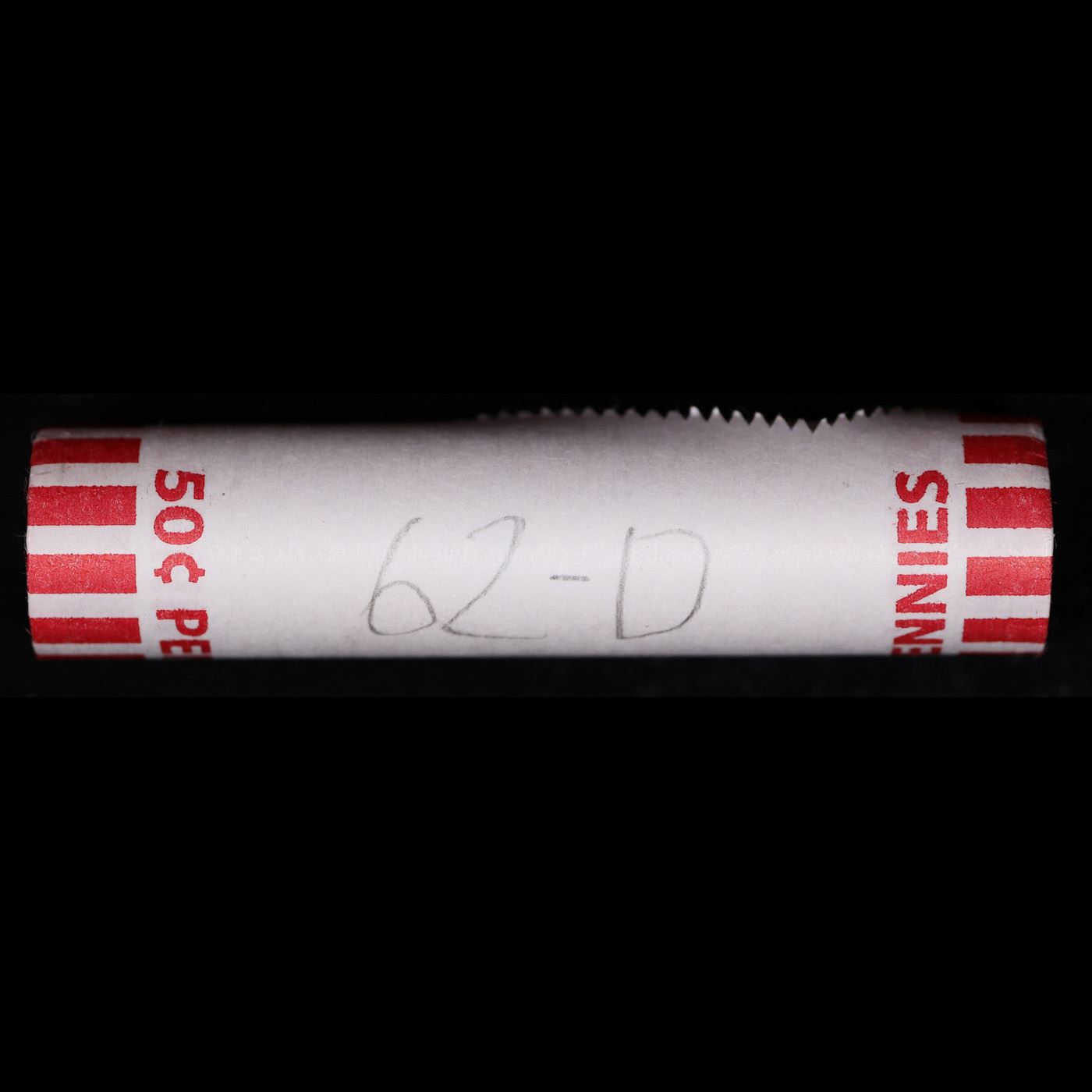 Shotgun Lincoln 1c roll, 1962-d 50 pcs Bank Wrapper.. A terrific Shotgun roll of Lincoln cents. Most if not all coin should be cherry red.