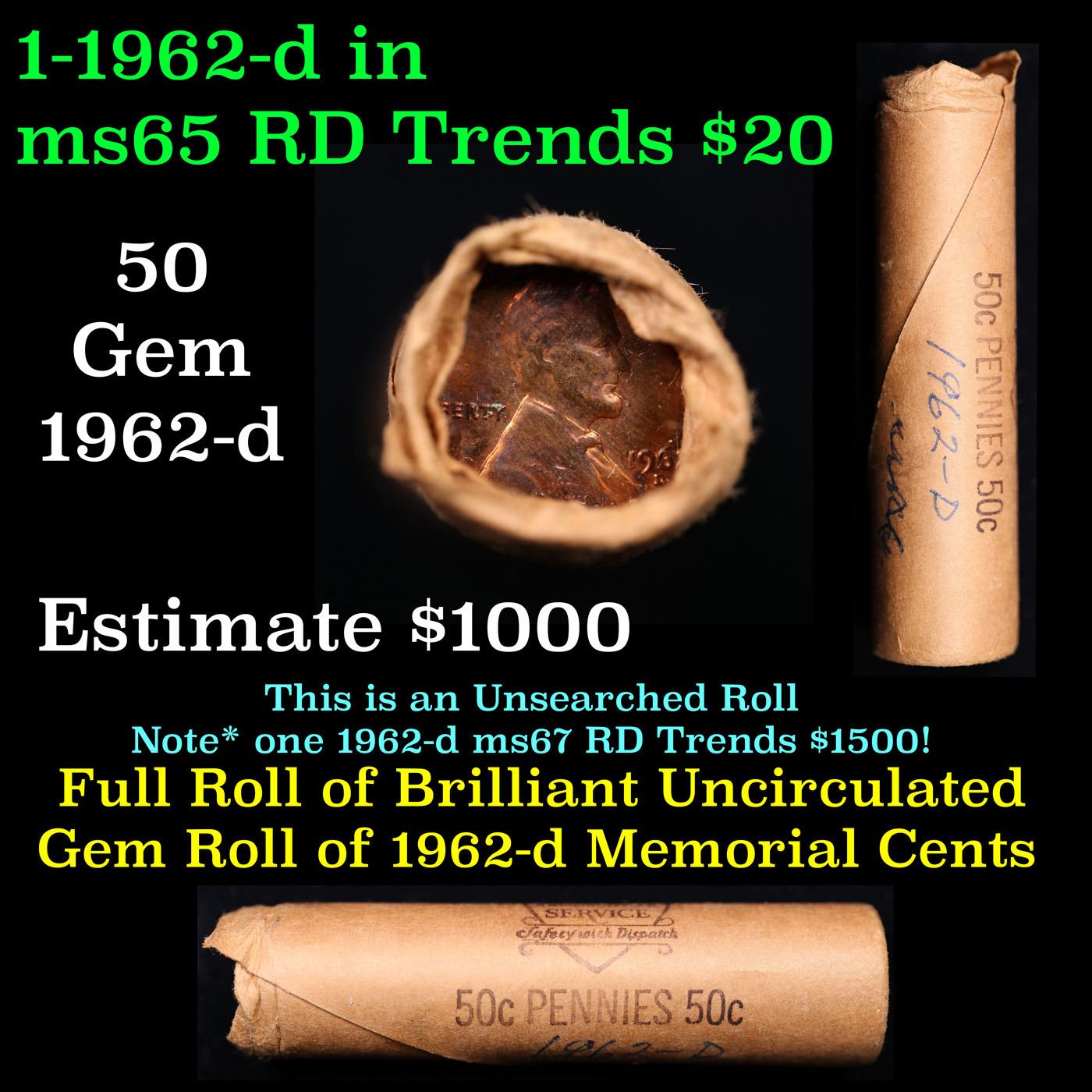 Shotgun Lincoln 1c roll, 1962-d 50 pcs Looms Armored Car Service Wrapper.. A terrific Shotgun roll of Lincoln cents. Most if not all coin should be cherry red. Trends ms65 rd $20