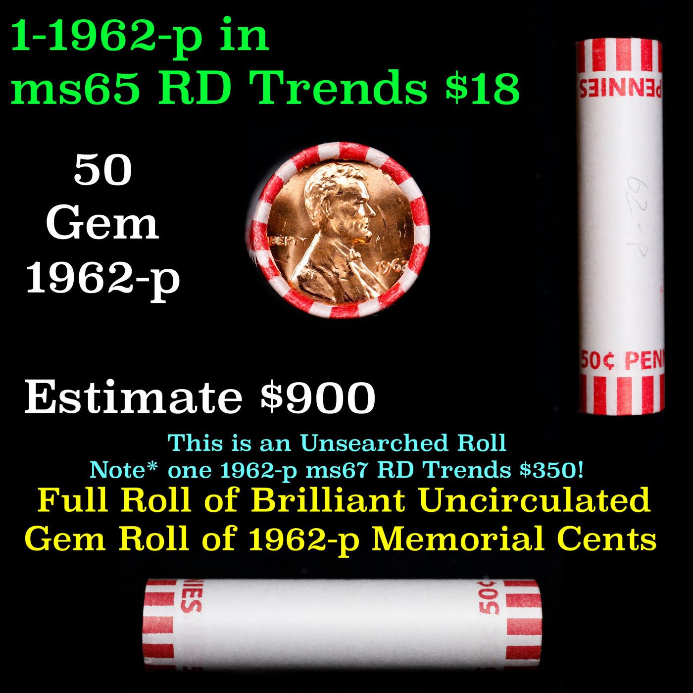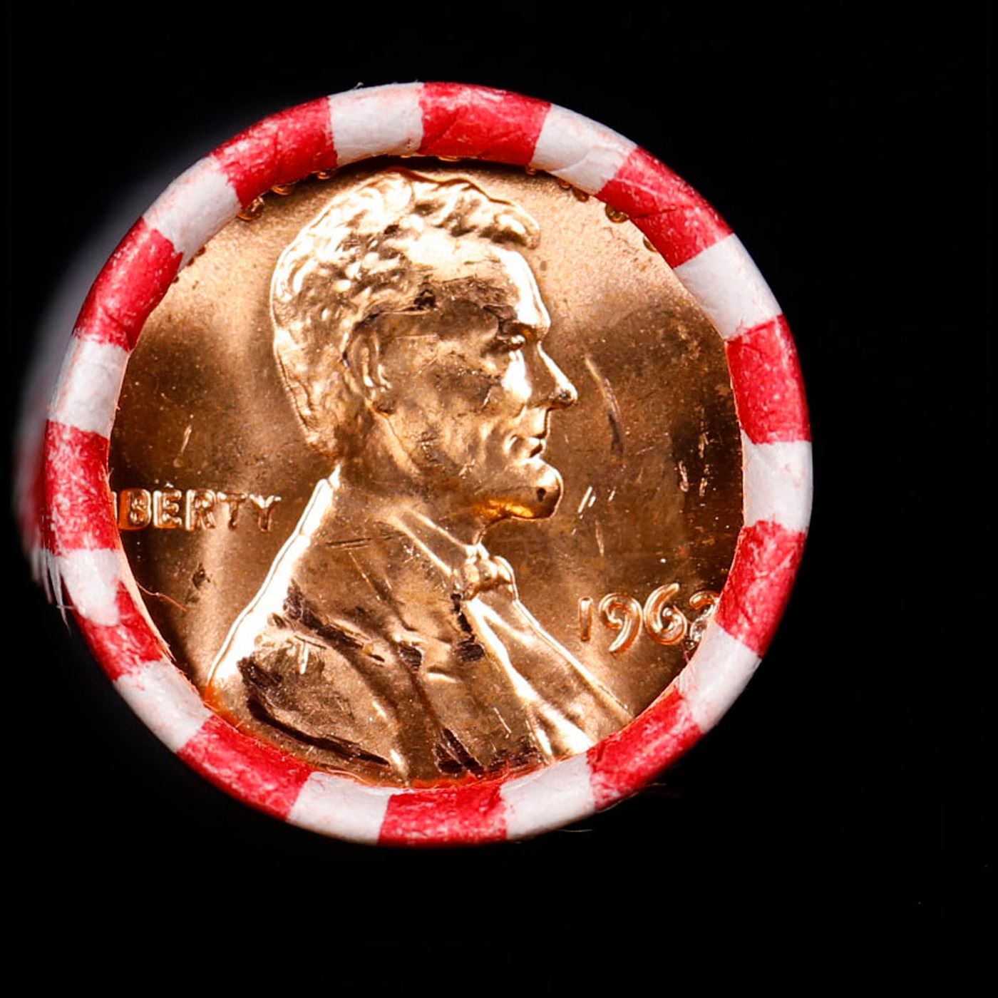 Shotgun Lincoln 1c roll, 1962-p 50 pcs Bank Wrapper.. A terrific Shotgun roll of Lincoln cents. Most if not all coin should be cherry red.
