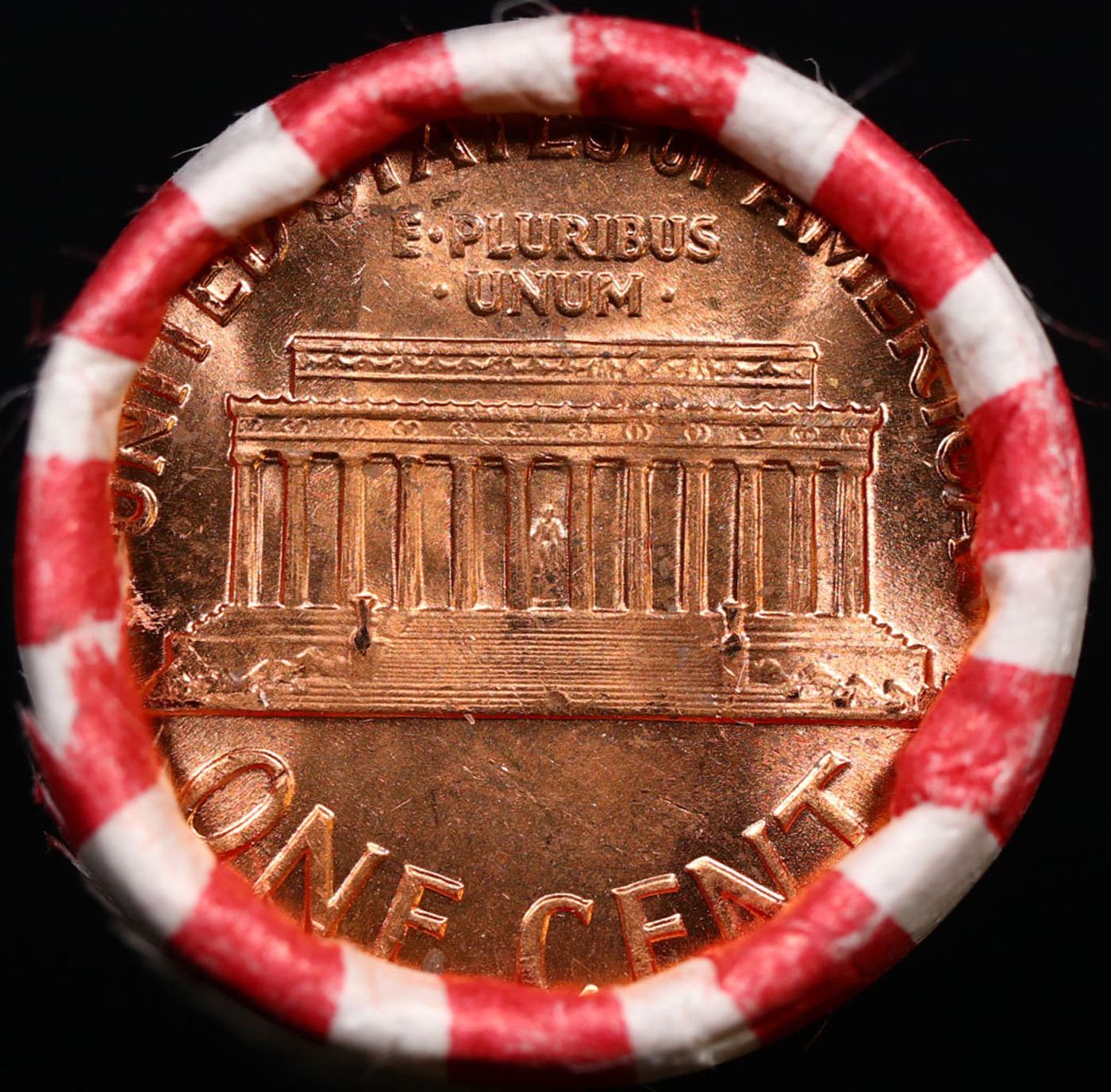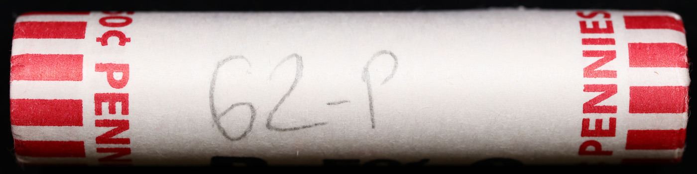 Shotgun Lincoln 1c roll, 1962-p 50 pcs Bank Wrapper.. A terrific Shotgun roll of Lincoln cents. Most if not all coin should be cherry red.