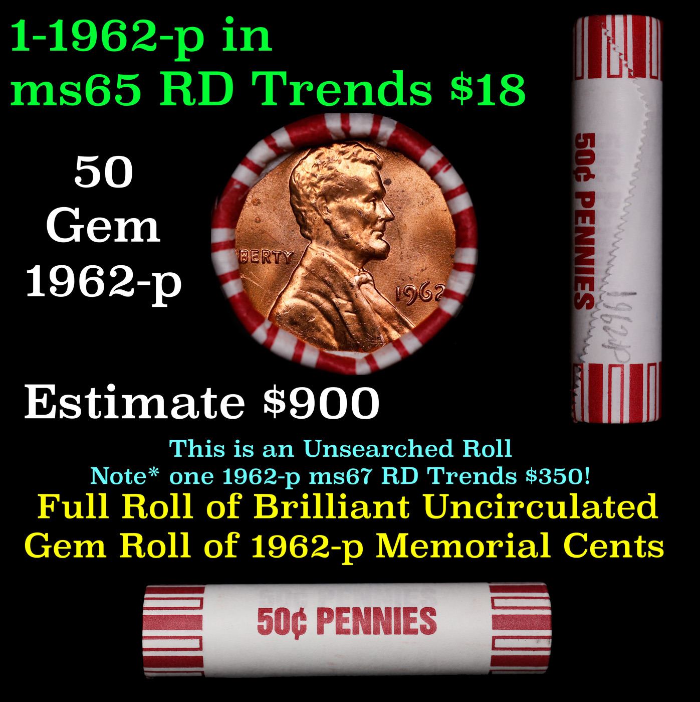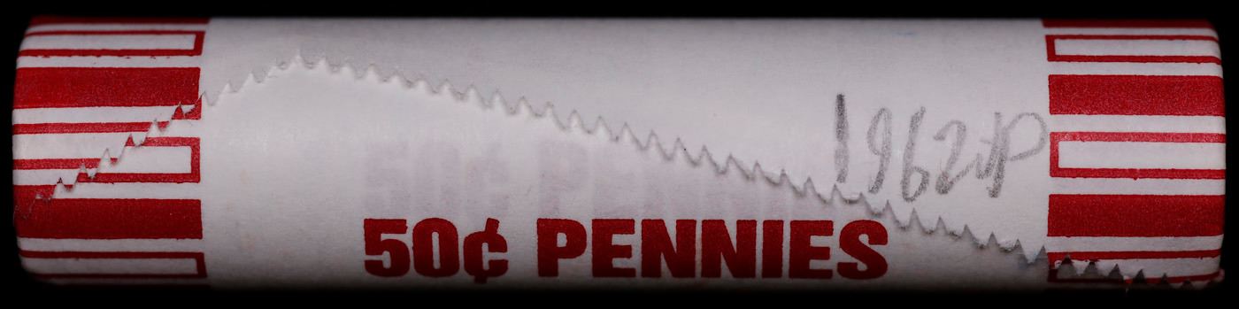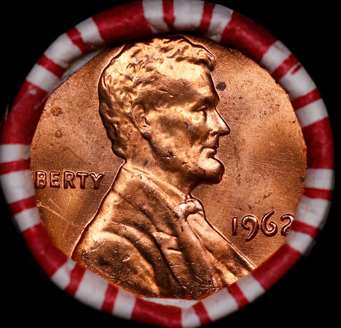 Shotgun Lincoln 1c roll, 1962-p 50 pcs Brandt 50c Wrapper.. A terrific Shotgun roll of Lincoln cents. Most if not all coin should be cherry red.